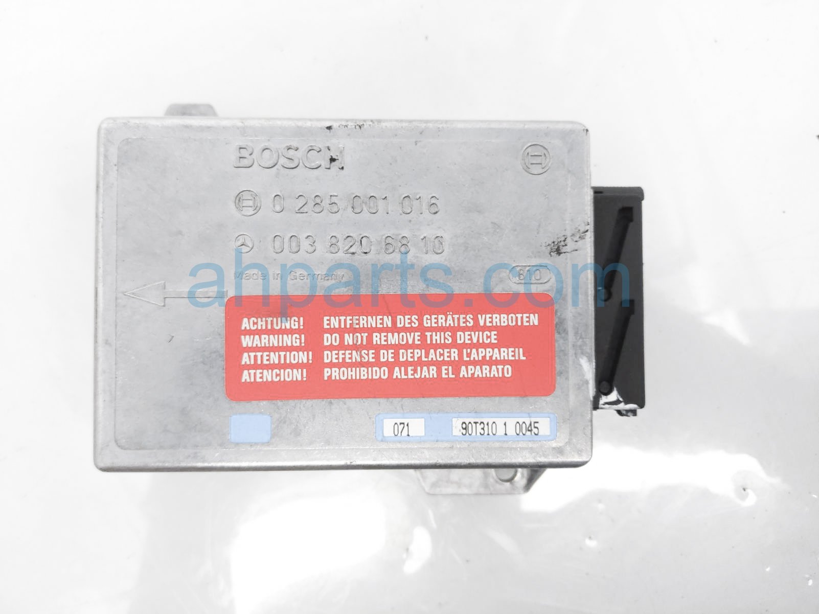 1991 Mercedes 300SL srs crash sensor control unit is a used item with a 1 year warranty. This OEM replacement srs crash sensor control unit is genuine and has part numbers 003-820-68-10, and 0038206810. This Mercedes part sells for $40.