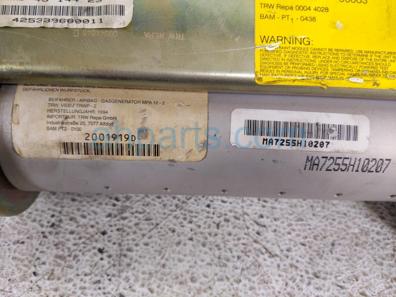 1995 Saab 9000 passenger dash airbag is a used item with a 1 year warranty. This OEM replacement passenger dash airbag is genuine and has part numbers 5013347. This Saab part sells for $99.