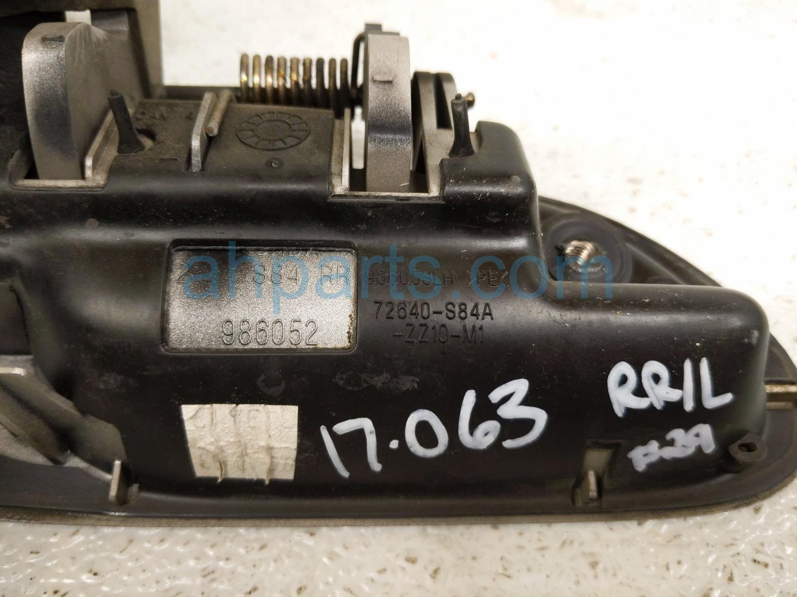 1998 Honda Accord outside/exterior rear driver exterior door handle - gold is a used item with a 1 year warranty. This OEM replacement outside/exterior rear driver exterior door handle - gold is genuine and has part numbers 72680-S84-A01ZJ, and 72680S84A01ZJ. This Honda part sells for $30.
