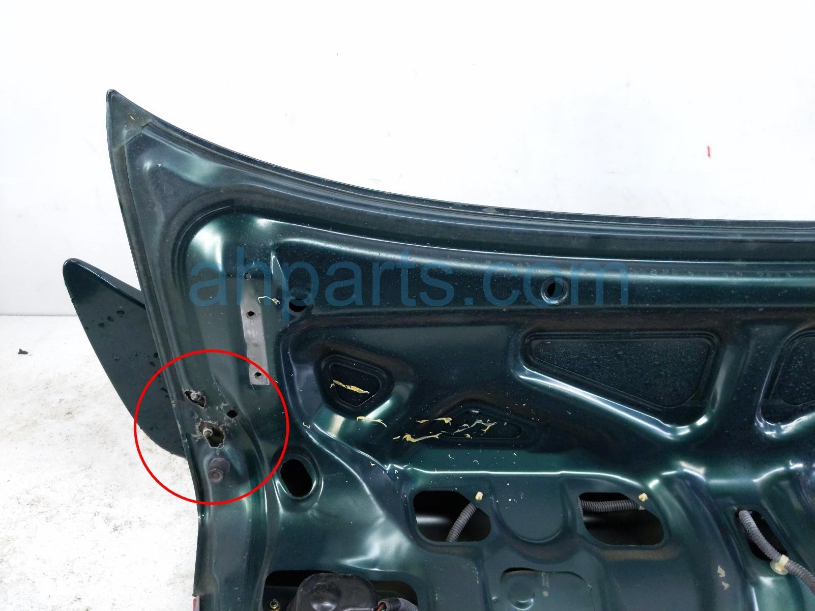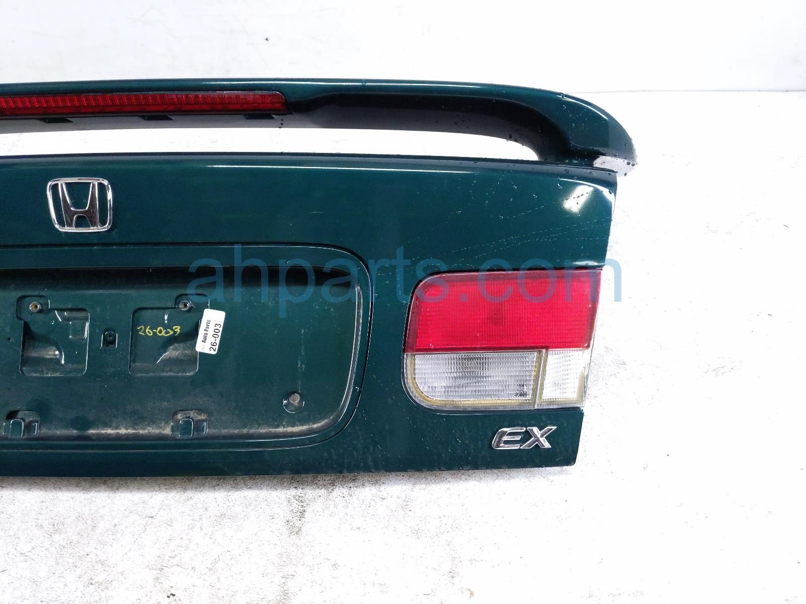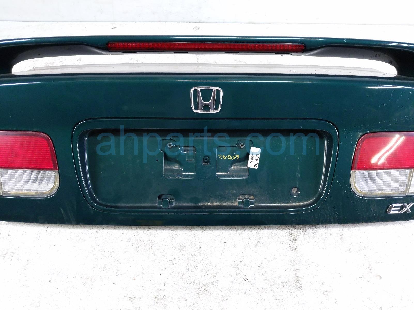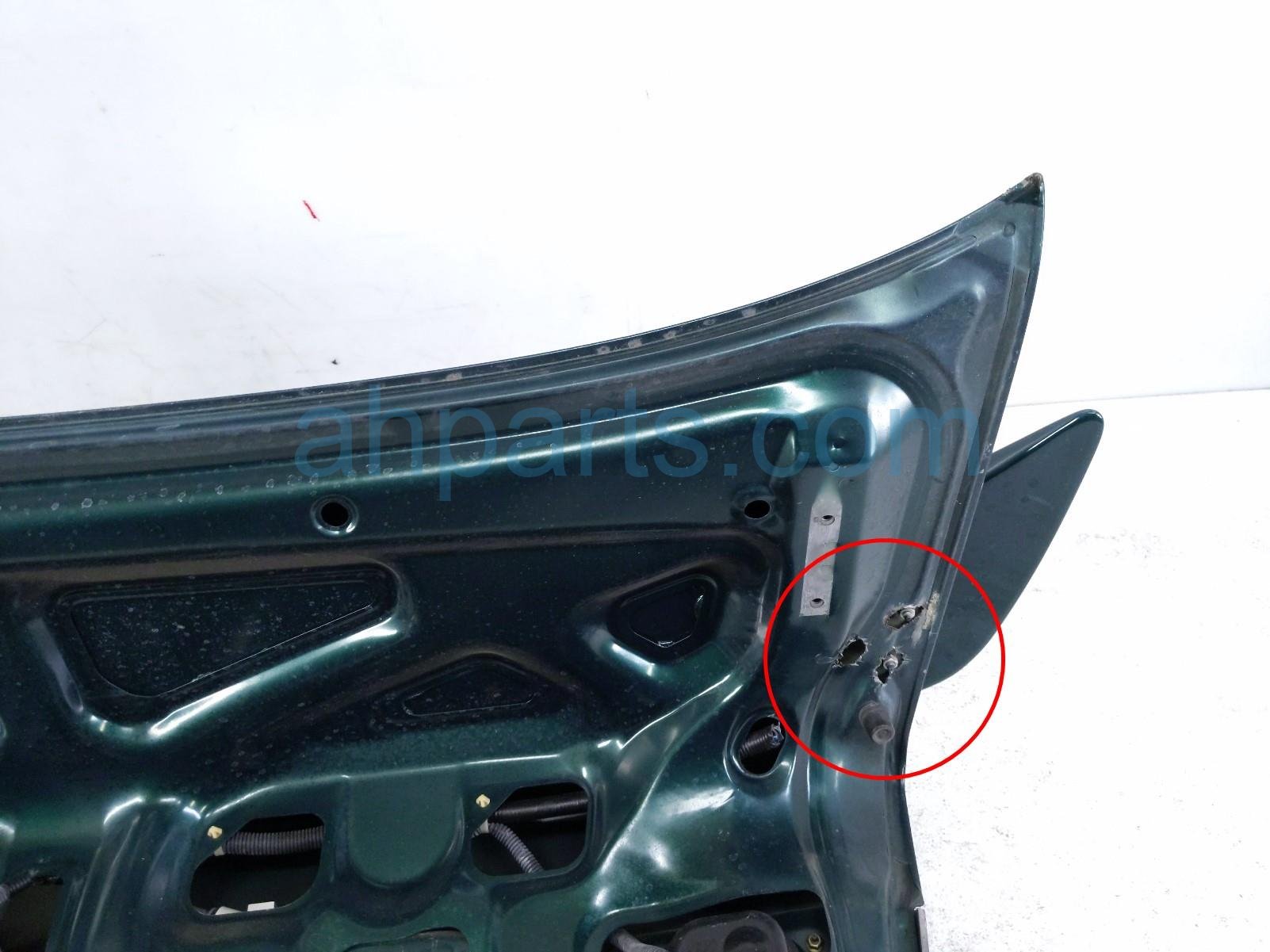 2000 Honda Civic trunk / decklid - green is a used item with a 1 year warranty. This OEM replacement trunk / decklid - green is genuine and has part numbers 68500-S02-A01ZZ, 68500S02A01ZZ, 74851-S01-A01, 74851S01A01, 74890-S02-A10ZQ, 74890S02A10ZQ, 34151-S02-A51, 34151S02A51, 34156-S02-A51, and 34156S02A51. This Honda part sells for $150. This item has the following note: 'Has minor scratches on spoiler and has drilled holes in decklid.'