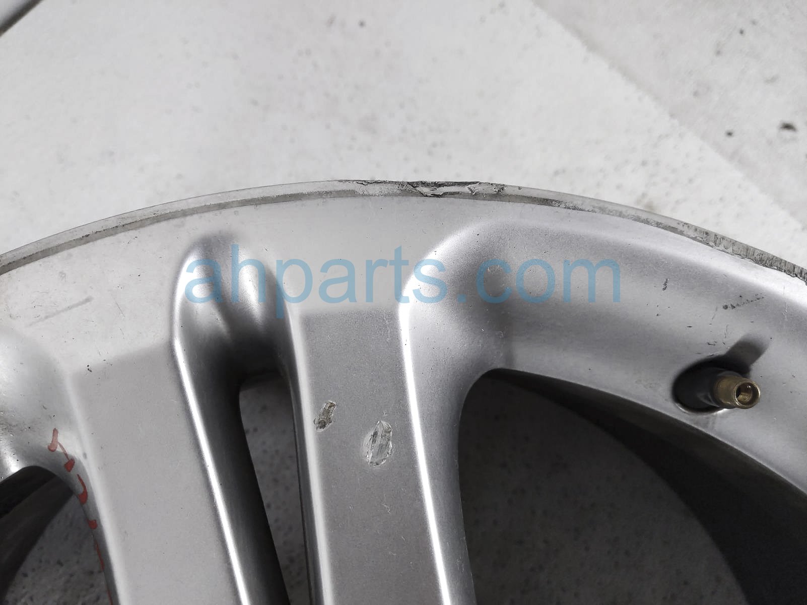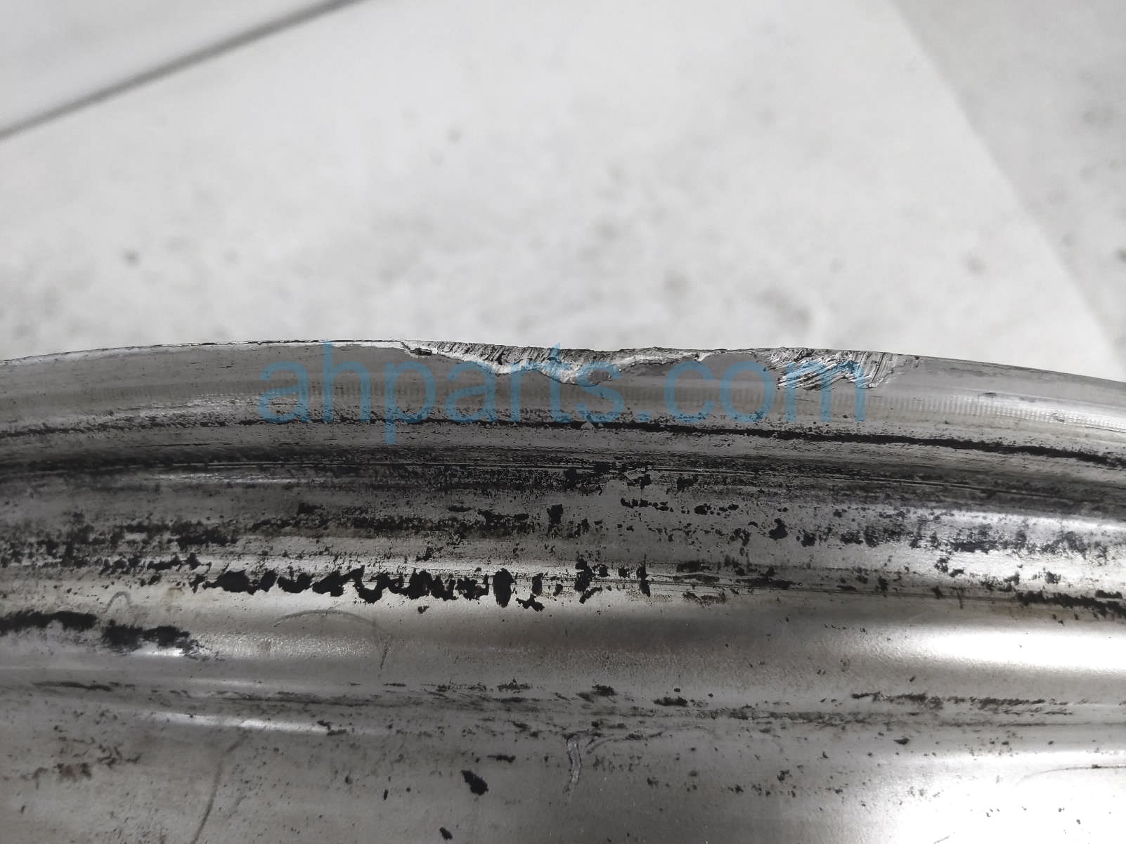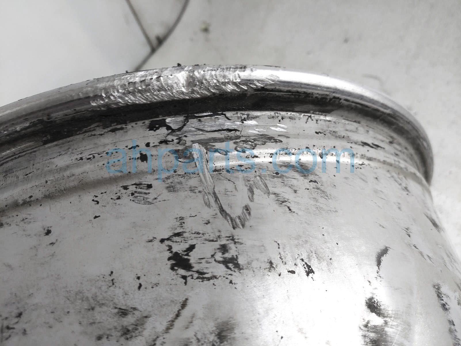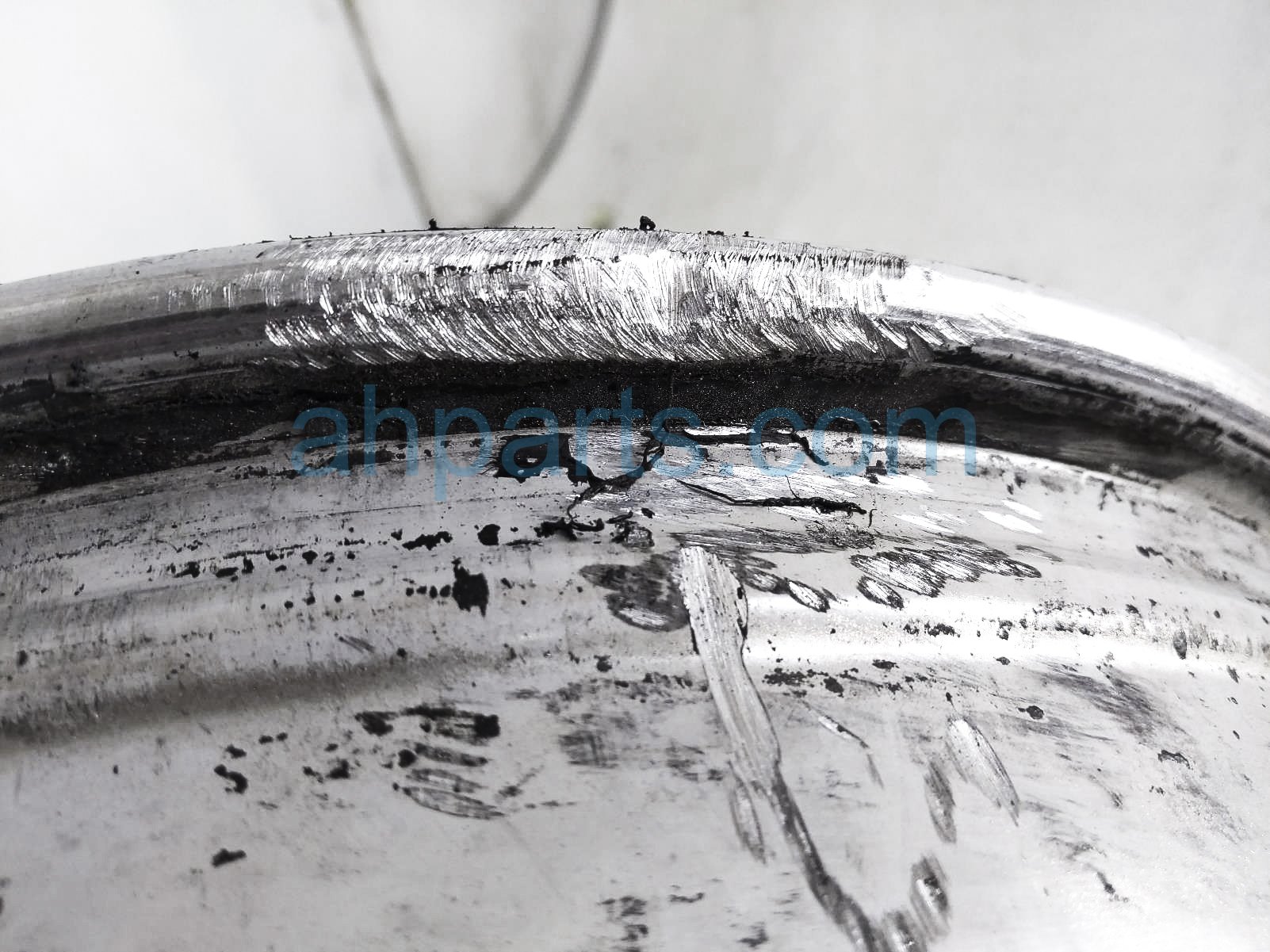 This item has curb rash on the outer edge and face and it has deep scuffs on the back inner edge - grade c.