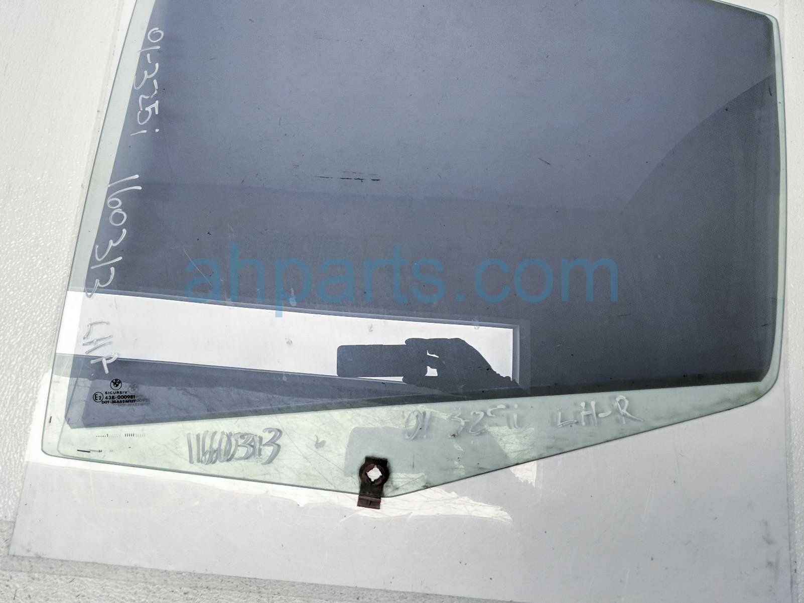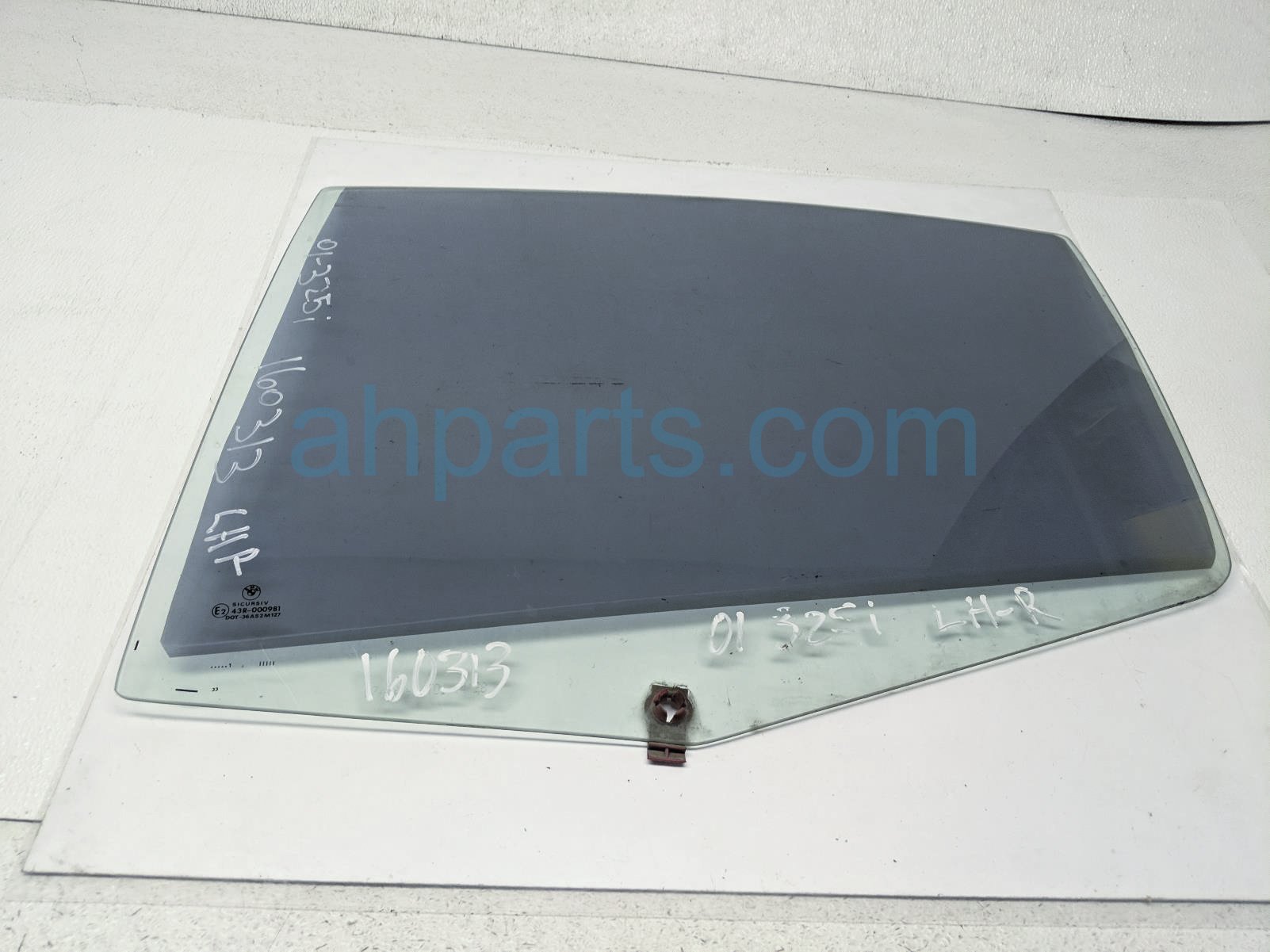2001 BMW 325I rear driver door glass window - tinted is a used item with a 1 year warranty. This OEM replacement rear driver door glass window - tinted is genuine and has part numbers 51348196027. This BMW part sells for $45.