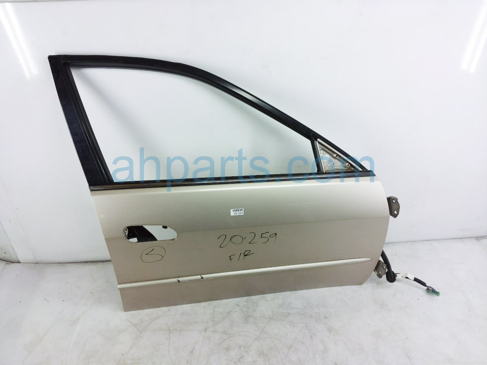 2001 Honda Accord front passenger door - gold - shell only is a used item with a 1 year warranty. This OEM replacement front passenger door - gold - shell only is genuine and has part numbers 67010-S84-A90ZZ, 67010S84A90ZZ, 32752-S84-A41, and 32752S84A41. This Honda part sells for $80. This item has the following note: 'Has minor scratches.'