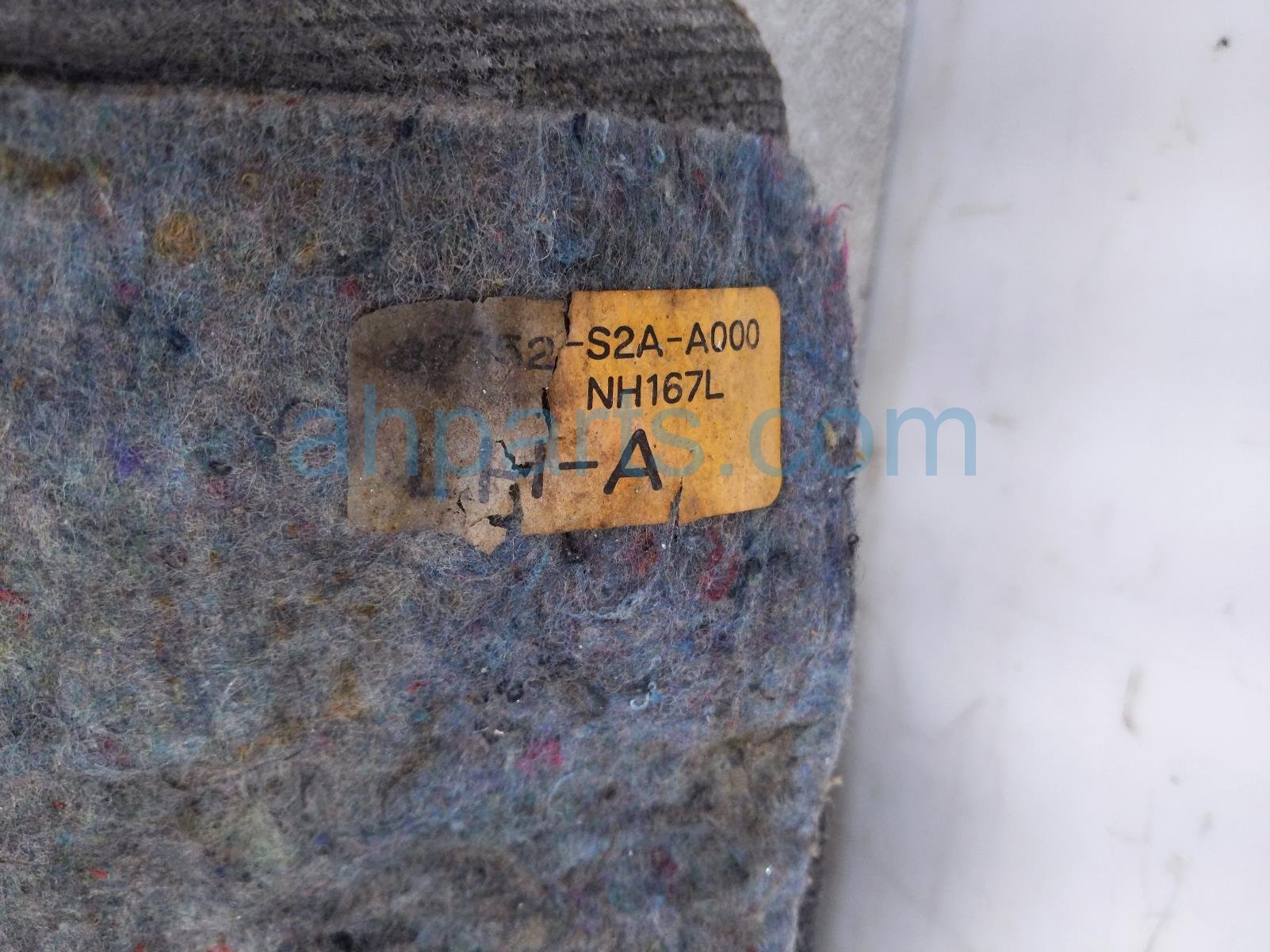 2001 Honda S2000 front ground front driver floor carpet - black * is a used item with a 1 year warranty. This OEM replacement front ground front driver floor carpet - black * is genuine and has part numbers 83352-S2A-A01ZA, and 83352S2AA01ZA. This Honda part sells for $199. This item has the following note: 'This item has a small tear in the corner.'