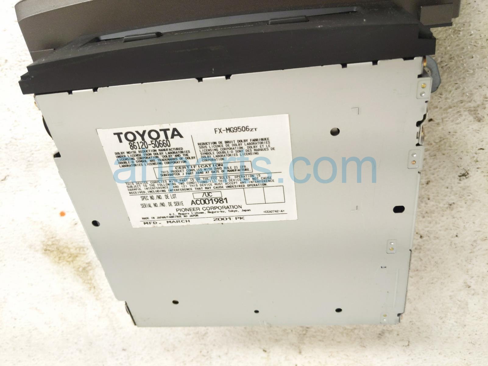 2001 Lexus LS430 audio/radio receiver is a used item with a 1 year warranty. This OEM replacement audio/radio receiver is genuine and has part numbers 86120-50750, 8612050750, FX-MG9506ZT, FXMG9506ZT, 86120-50660, and 8612050660. This Lexus part is for sale (please call for pricing).