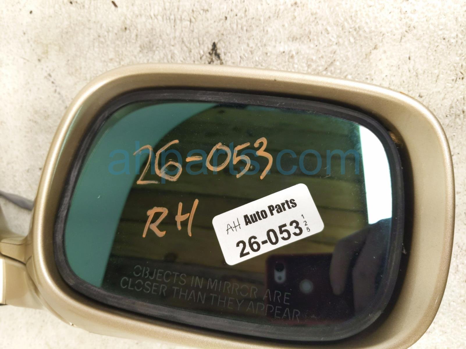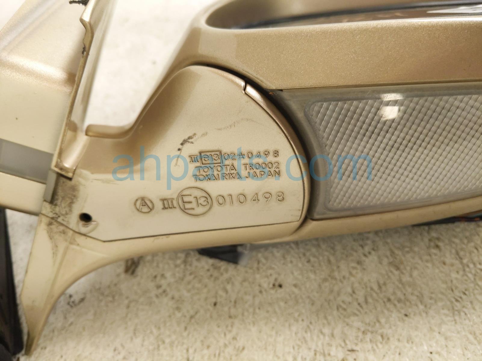2001 Lexus LS430 rear passenger side view mirror - gold is a used item with a 1 year warranty. This OEM replacement rear passenger side view mirror - gold is genuine and has part numbers 87910-50462-A1, and 8791050462A1. This Lexus part is for sale (please call for pricing). This item has the following note: 'This item has some scuffs and some scratches.'