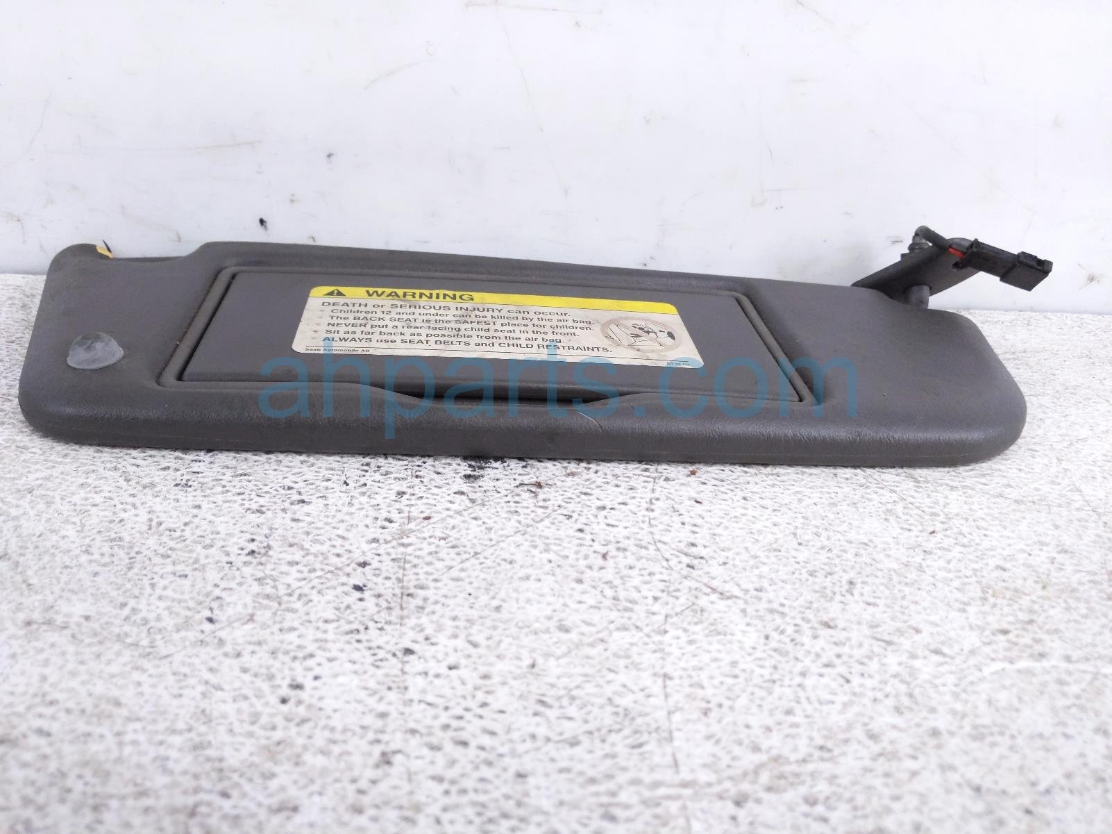 2001 Saab 9-3 passenger sun visor - black is a used item with a 1 year warranty. This OEM replacement passenger sun visor - black is genuine and has part numbers 5437280. This Saab part sells for $49. This item has the following note: 'This item is a little dirty with scuffs.'