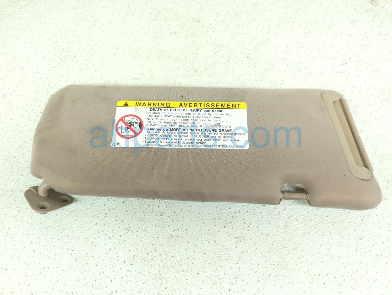 2001 Toyota Camry driver sun visor - beige is a used item with a 1 year warranty. This OEM replacement driver sun visor - beige is genuine and has part numbers 74320-AA056-A0, and 74320AA056A0. This Toyota part sells for $45. This item has the following note: 'Dirty - grade b.'