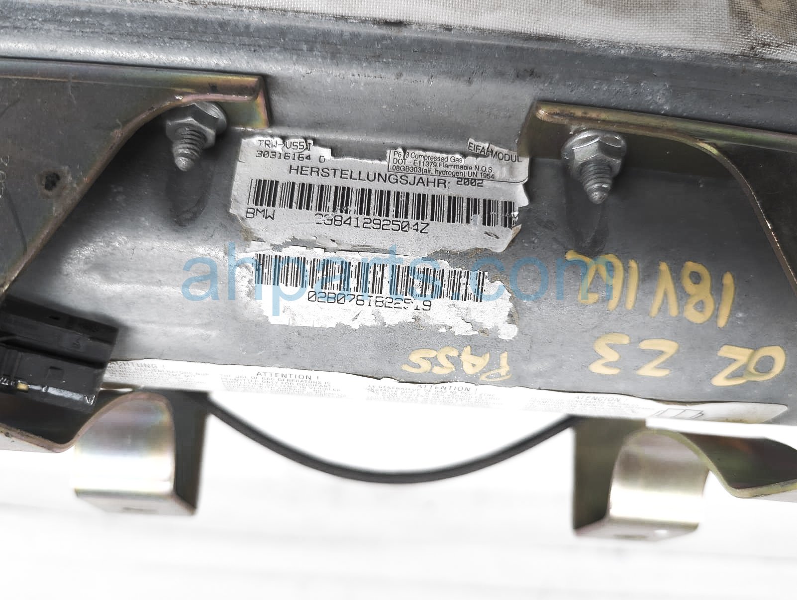 2002 BMW Z3 passenger dashboard airbag is a used item with a 1 year warranty. This OEM replacement passenger dashboard airbag is genuine and has part numbers 72-12-8-412-925, and 72128412925. This BMW part sells for $99.