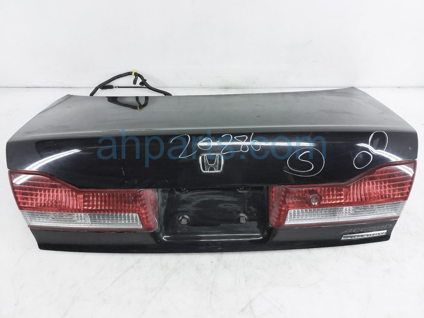 2002 Honda Accord trunk / decklid - black - is a used item with a 1 year warranty. This OEM replacement trunk / decklid - black - is genuine and has part numbers 68500-S84-A80ZZ, 68500S84A80ZZ, 34151-S84-A11, 34151S84A11, 34156-S84-A11, and 34156S84A11. This Honda part sells for $150. This item has the following note: 'Has minor scratches & a couple dings.'