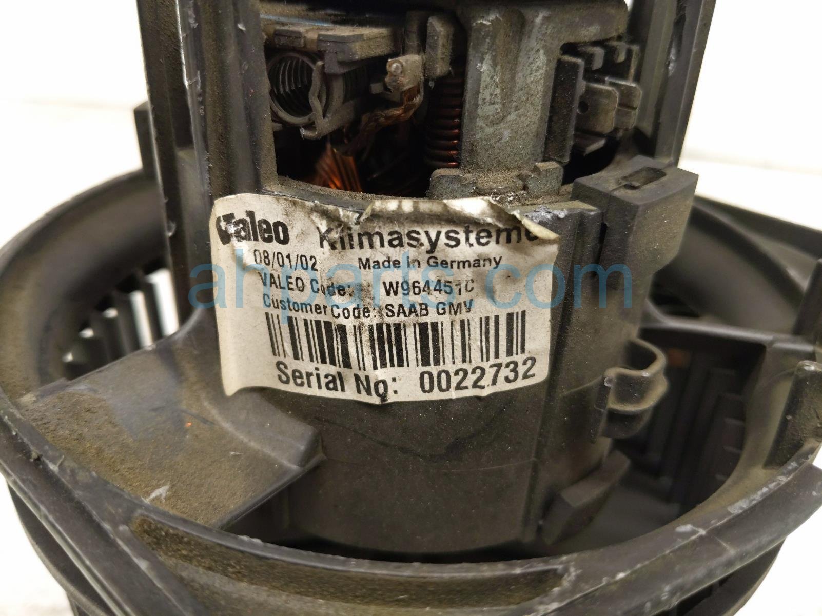 2002 Saab 9-5 air hvac blower motor assy is a used item with a 1 year warranty. This OEM replacement air hvac blower motor assy is genuine and has part numbers 5331236. This Saab part sells for $49.