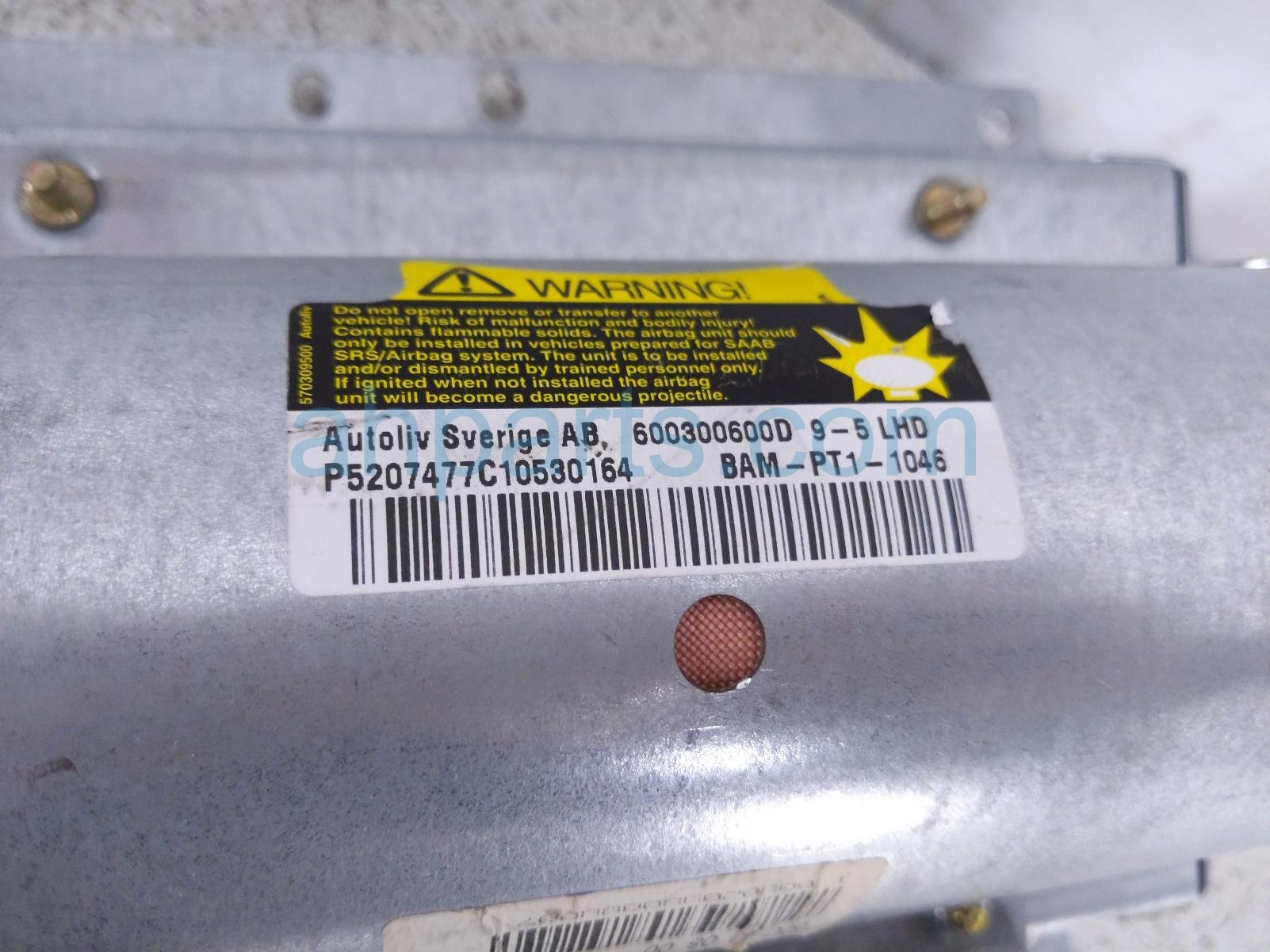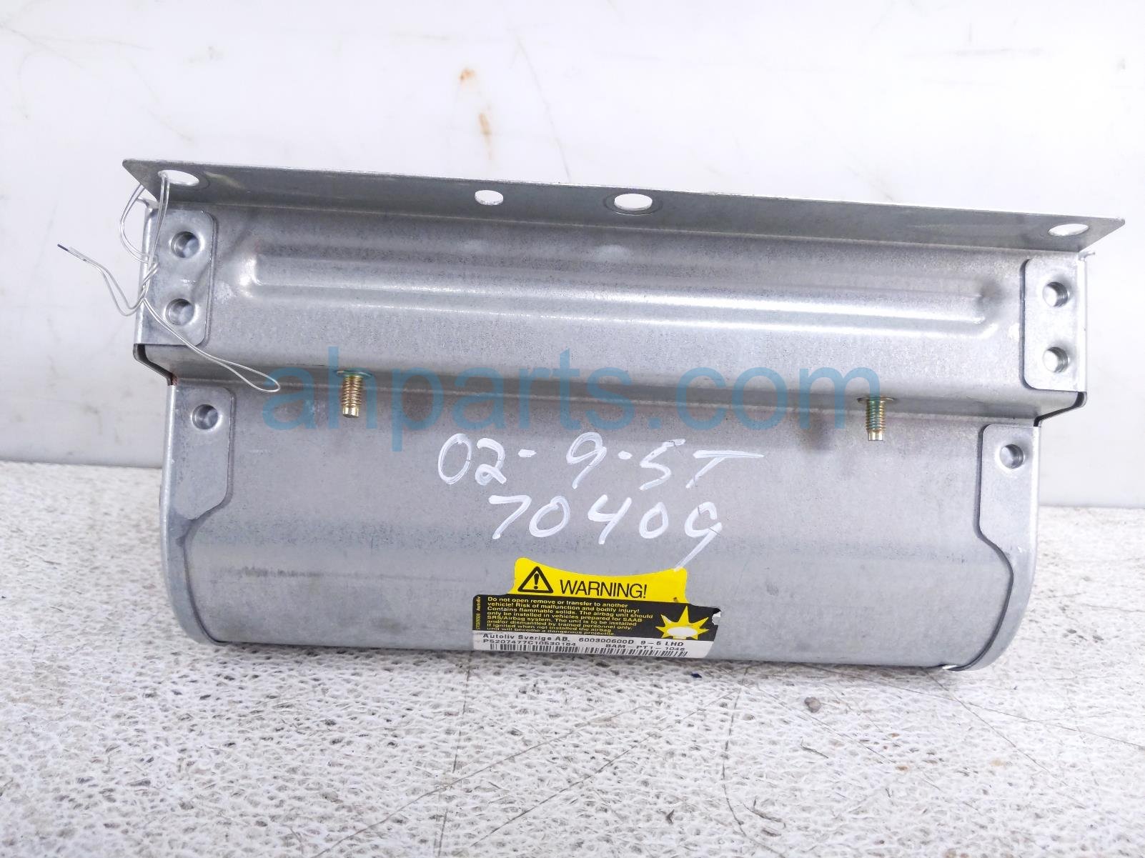 2002 Saab 9-5 passenger dash airbag is a used item with a 1 year warranty. This OEM replacement passenger dash airbag is genuine and has part numbers 5208350. This Saab part sells for $49.
