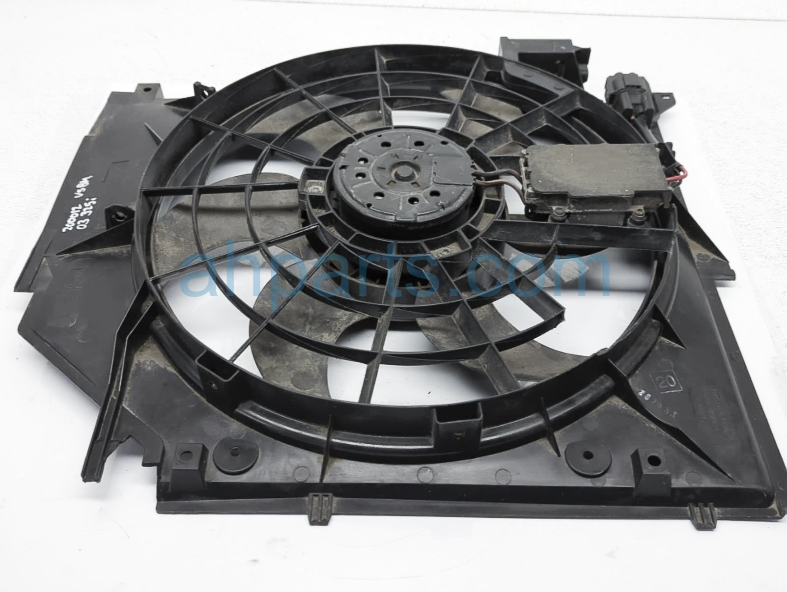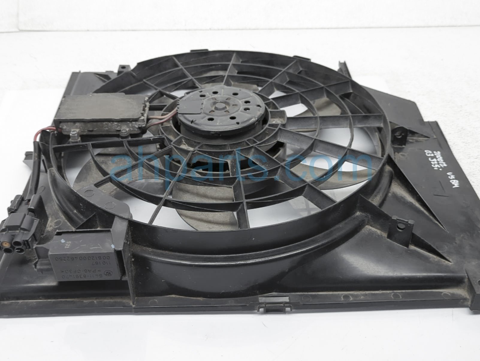 2003 BMW 325I radiator cooling fan assy is a used item with a 1 year warranty. This OEM replacement radiator cooling fan assy is genuine and has part numbers 17-11-1-436-259, 17111436259, 11-52-1-712-058, 11521712058, 11-52-7-505-302, and 11527505302. This BMW part sells for $75.