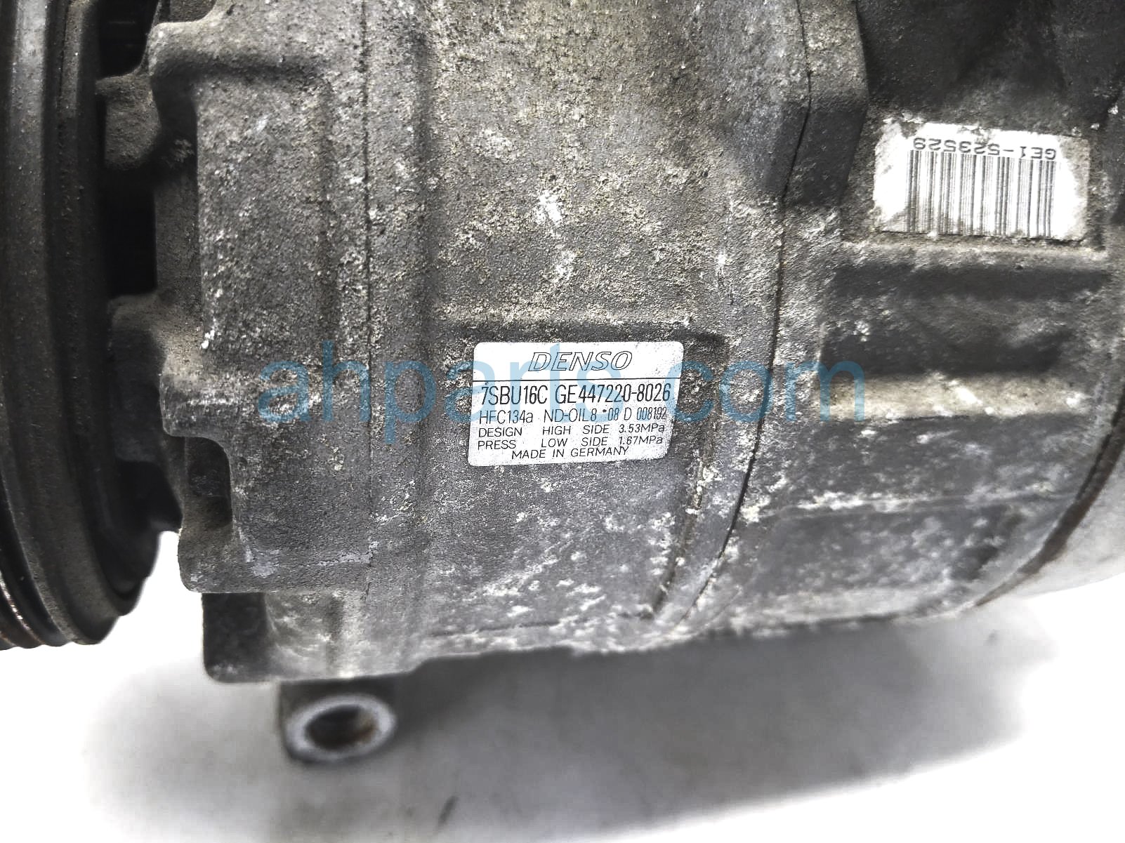 2003 BMW 525I air + clutch ac pump / compressor is a used item with a 1 year warranty. This OEM replacement air + clutch ac pump / compressor is genuine and has part numbers 64-52-6-910-458, and 64526910458. This BMW part sells for $40. This item has the following note: '[loa].'