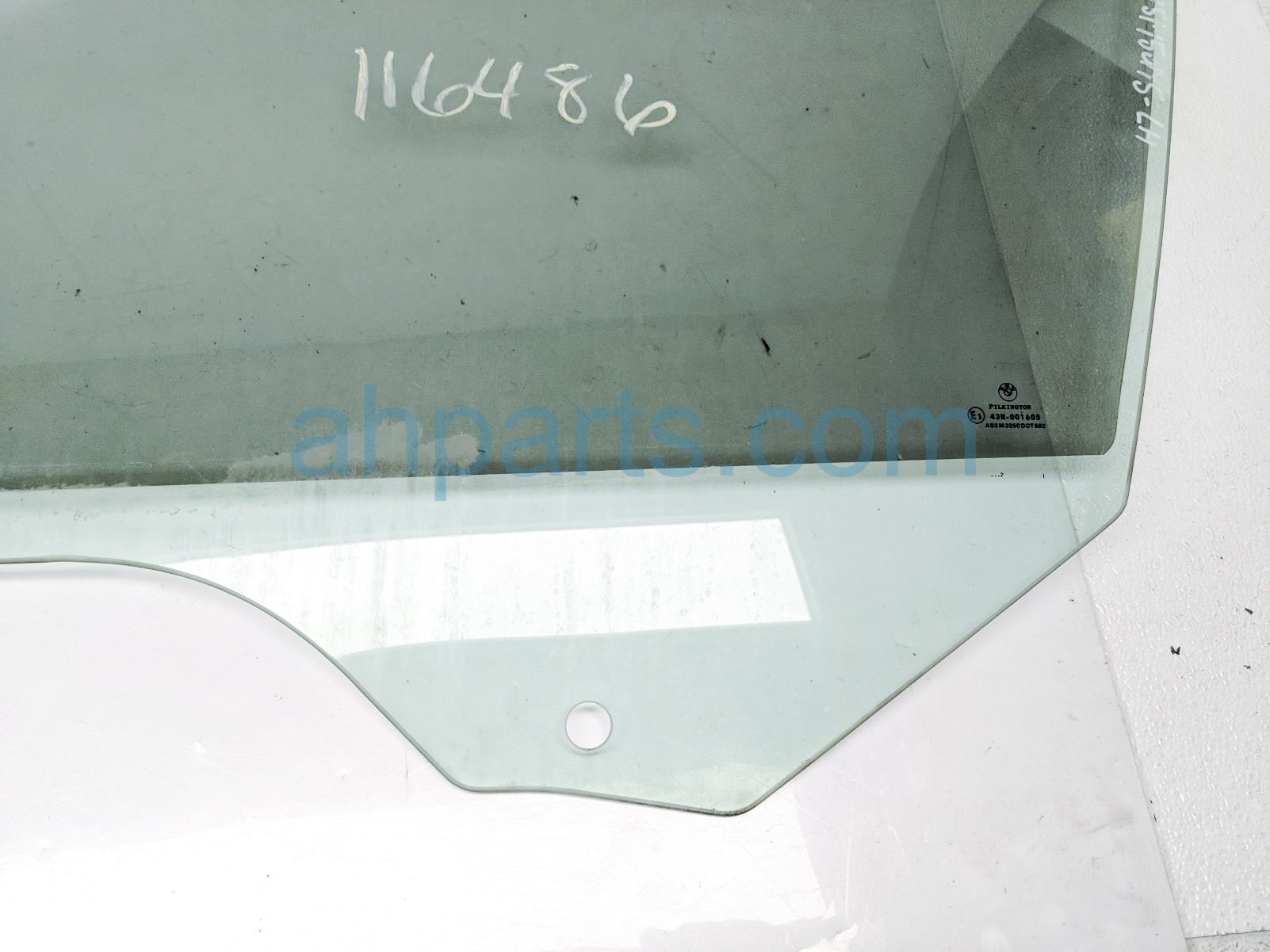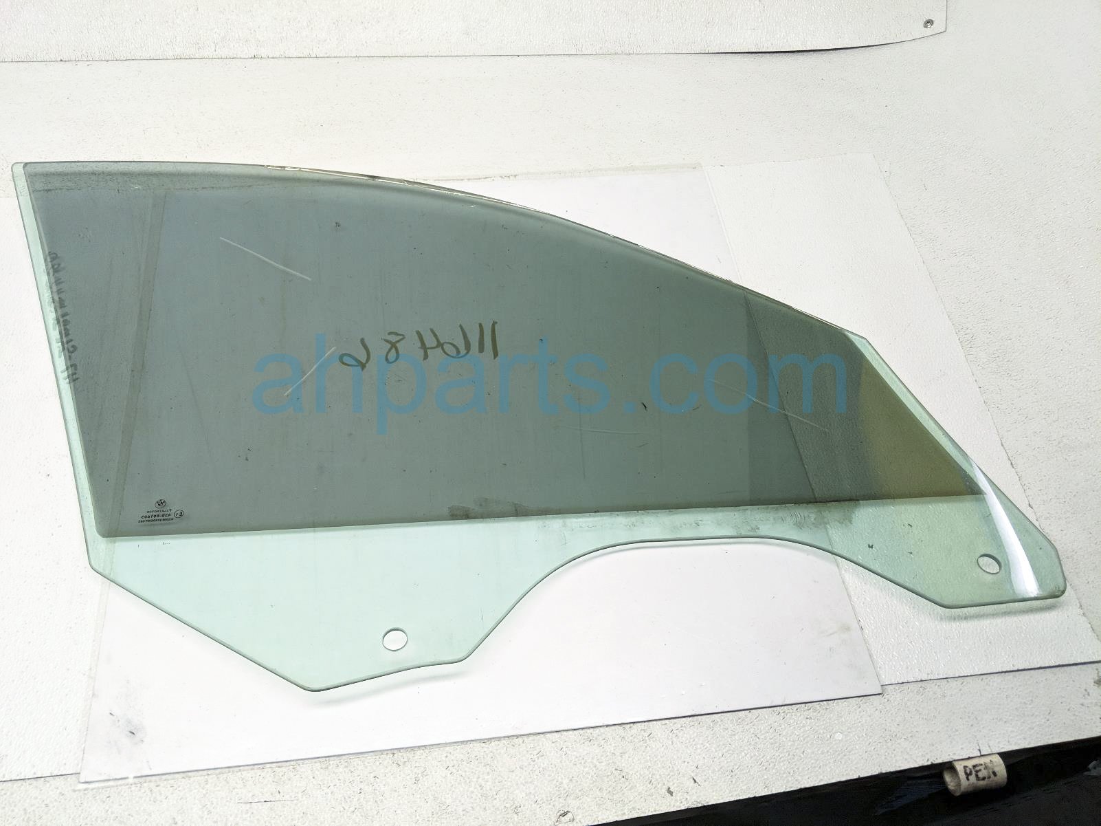 2003 BMW 745I front driver door glass window - tinted is a used item with a 1 year warranty. This OEM replacement front driver door glass window - tinted is genuine and has part numbers 51-33-8-223-839, and 51338223839. This BMW part sells for $70. This item has the following note: 'This item has a couple deep scratches in the tint.'