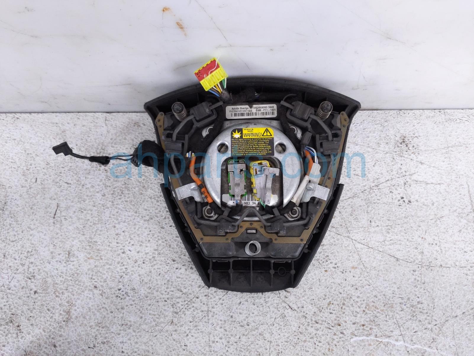 2003 Saab 9-3 driver wheel airbag is a used item with a 1 year warranty. This OEM replacement driver wheel airbag is genuine and has part numbers 12789426. This Saab part sells for $145. This item has the following note: 'This item has a very minor scuffs and a single ding.'