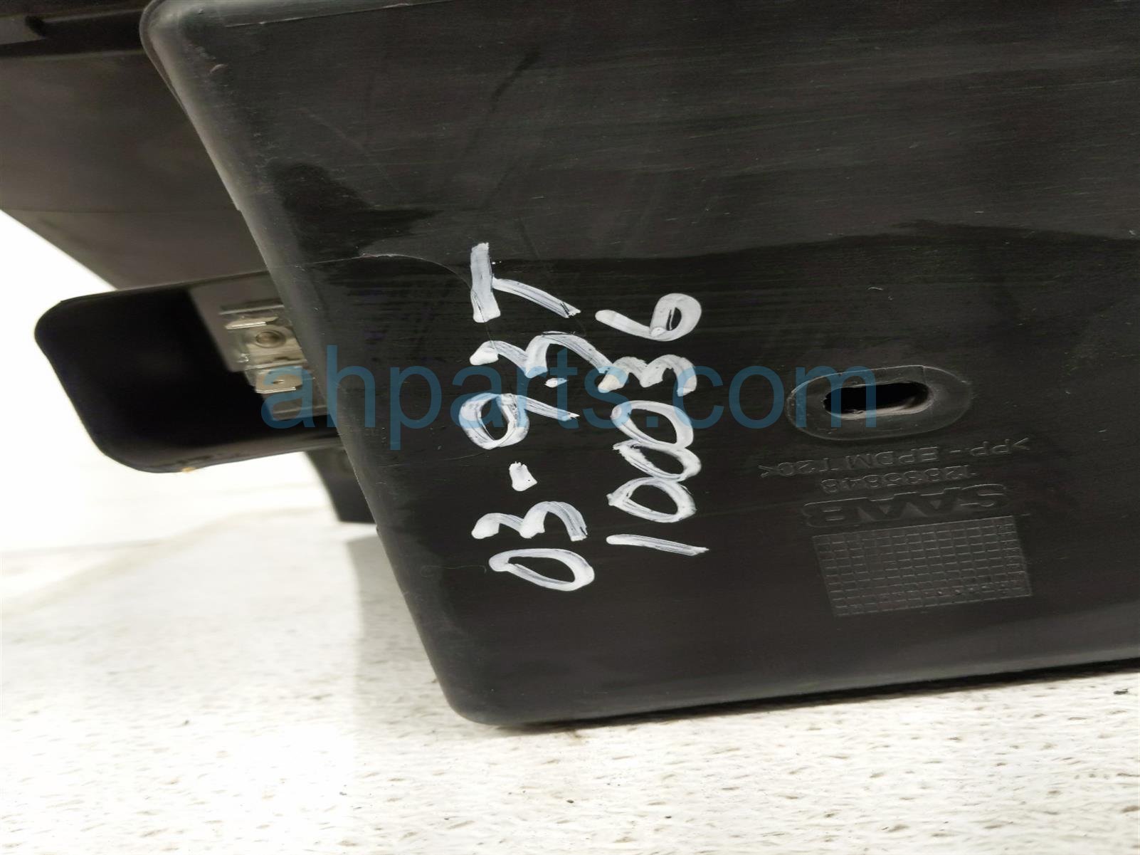 2003 Saab 9-3 glove compartment box - gray is a used item with a 1 year warranty. This OEM replacement glove compartment box - gray is genuine and has part numbers 12805646, and 12789300. This Saab part sells for $95.