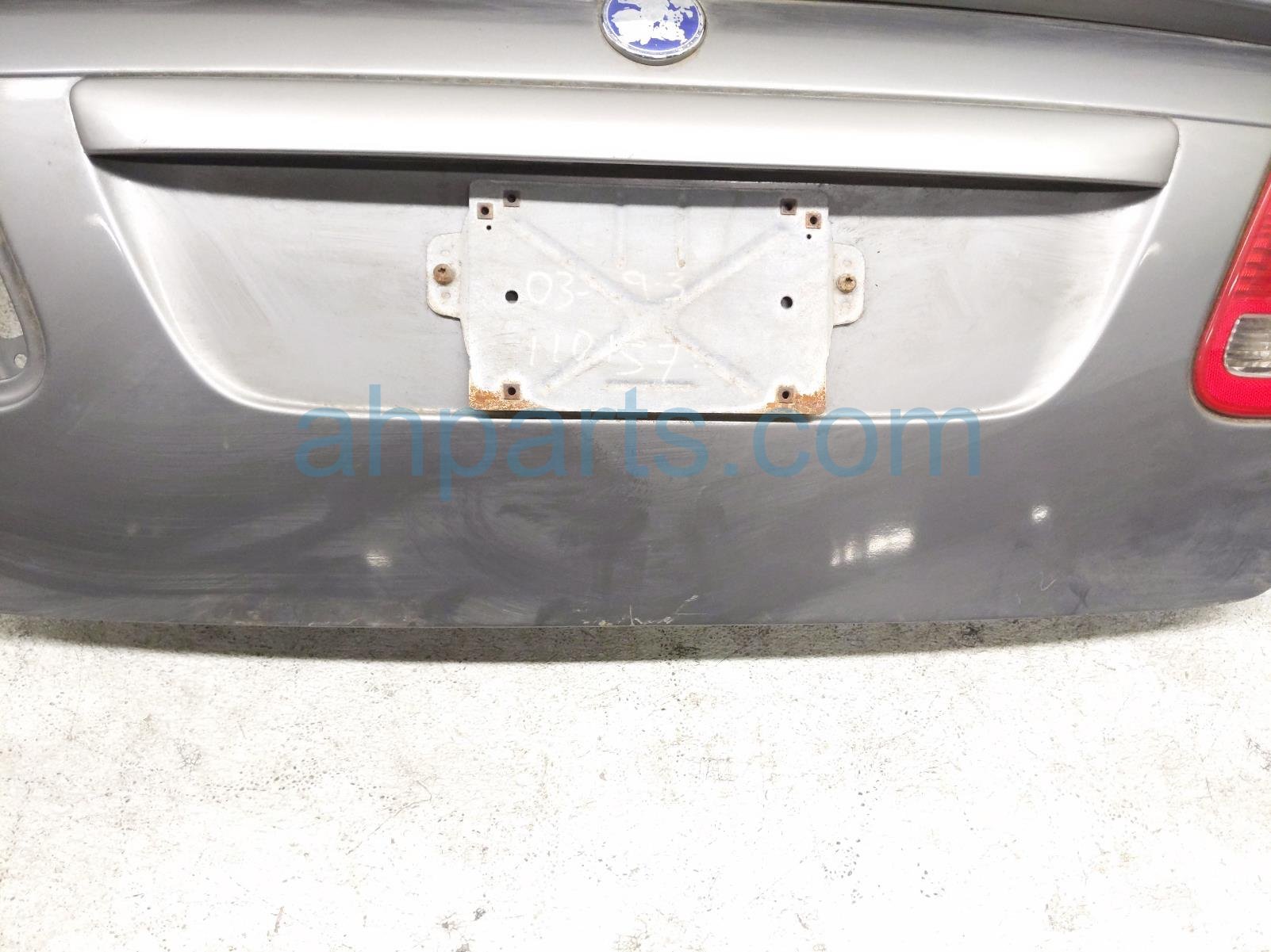 2003 Saab 9-3 trunk decklid / tailgate - gray * is a used item with a 1 year warranty. This OEM replacement trunk decklid / tailgate - gray * is genuine and has part numbers 12802376, and 12785766. This Saab part sells for $295. This item has the following note: 'This item has some deep scratches and paint chips.'