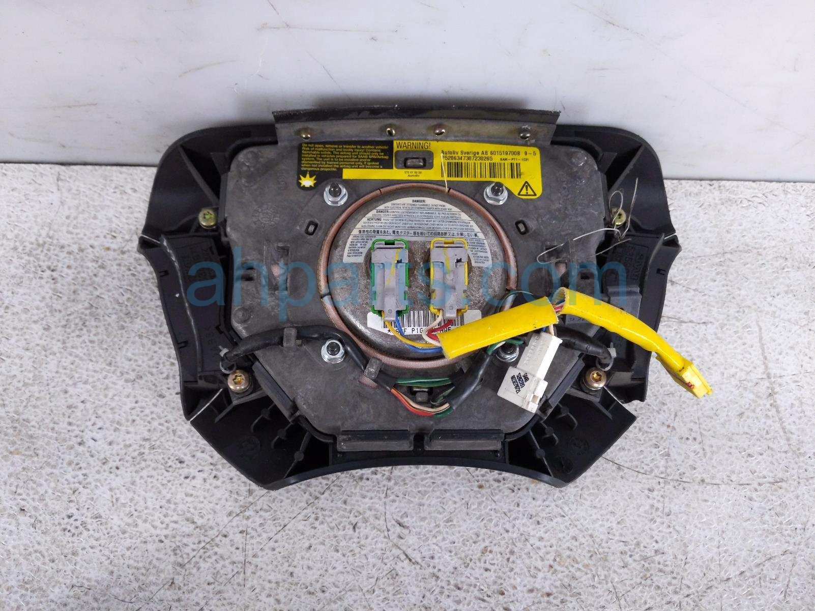 2003 Saab 9-5 driver wheel airbag is a used item with a 1 year warranty. This OEM replacement driver wheel airbag is genuine and has part numbers 5206339. This Saab part sells for $125. This item has the following note: 'This item has some scratches.'