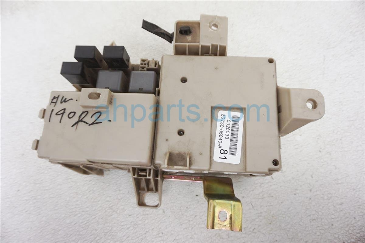 2003 Toyota Camry driver cabin fuse box multiplex module is a used item with a 1 year warranty. This OEM replacement driver cabin fuse box multiplex module is genuine and has part numbers 82730-06040, and 8273006040. This Toyota part sells for $45. This item has the following note: 'Has a few broken pieces.'