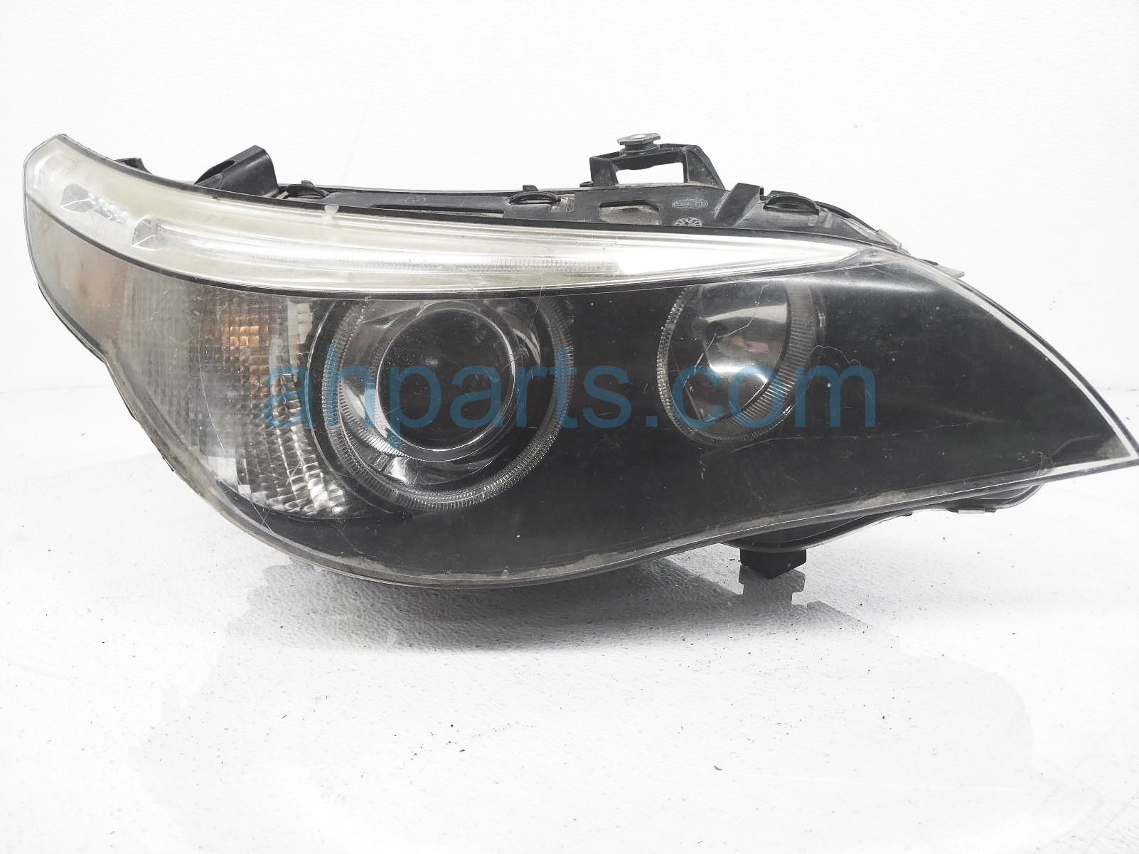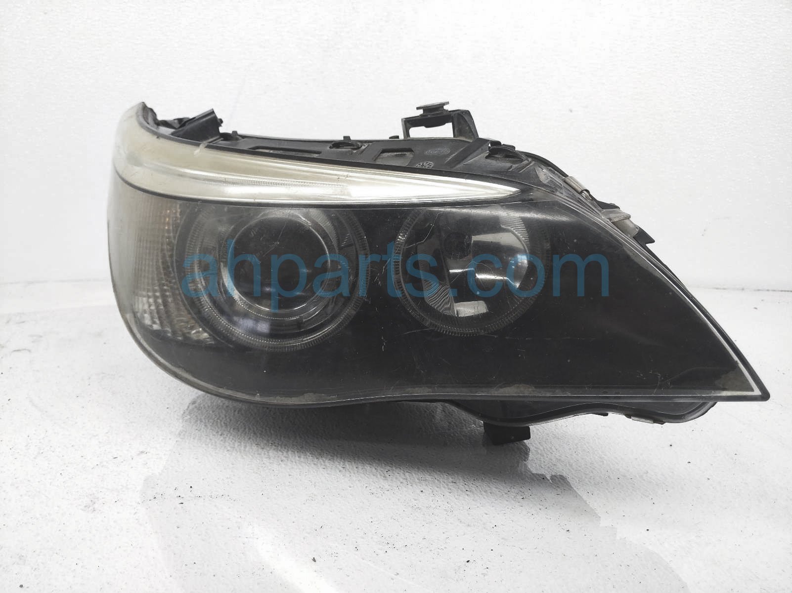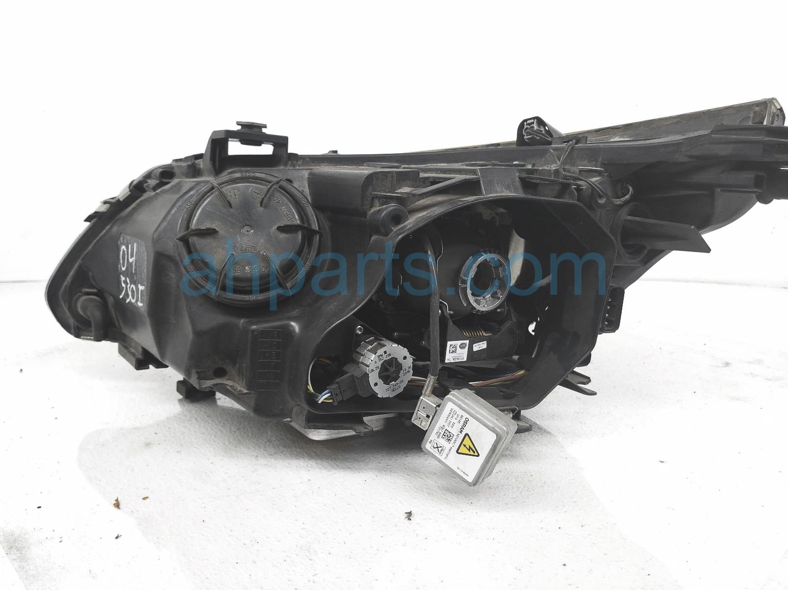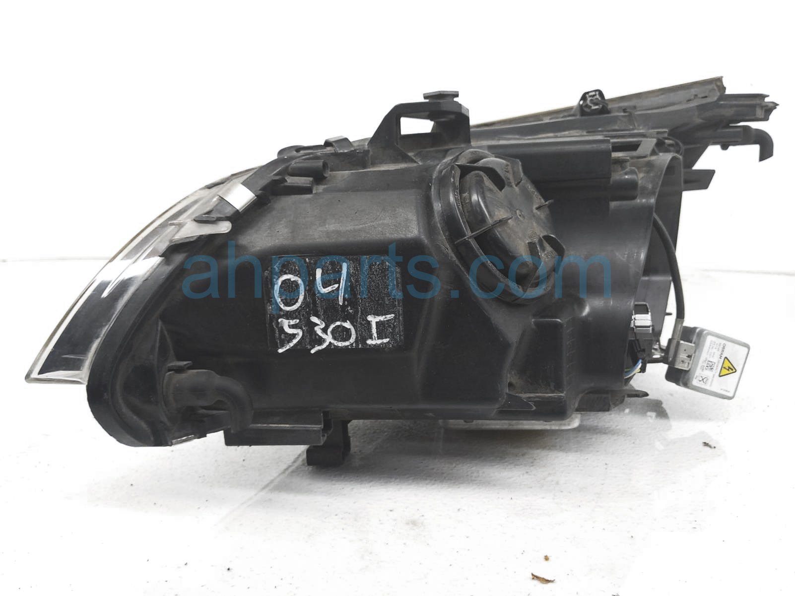 2004 BMW 530I headlight passenger head lamp / light is a used item with a 1 year warranty. This OEM replacement headlight passenger head lamp / light is genuine and has part numbers 63-12-7-160-158, 63127160158, 63-12-6-934-836, 63126934836, 63-12-7-189-312, and 63127189312. This BMW part sells for $300. This item has the following note: 'Headlamp has pitting and scratches on lens - missing back cover - grade b.'