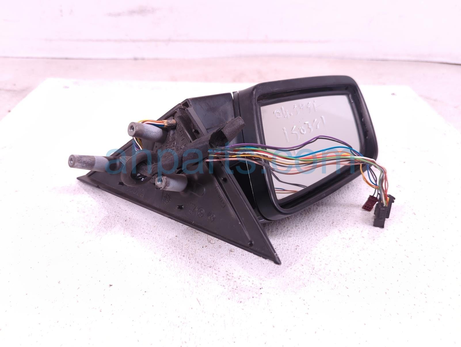 2004 BMW 545I rear driver side view mirror - black* is a used item with a 1 year warranty. This OEM replacement rear driver side view mirror - black* is genuine and has part numbers 51-16-7-189-500, 51167189500, 51-16-7-065-083, and 51167065083. This BMW part sells for $65. This item has the following note: 'Has scuffs/scratches on cover cap - grade b.'