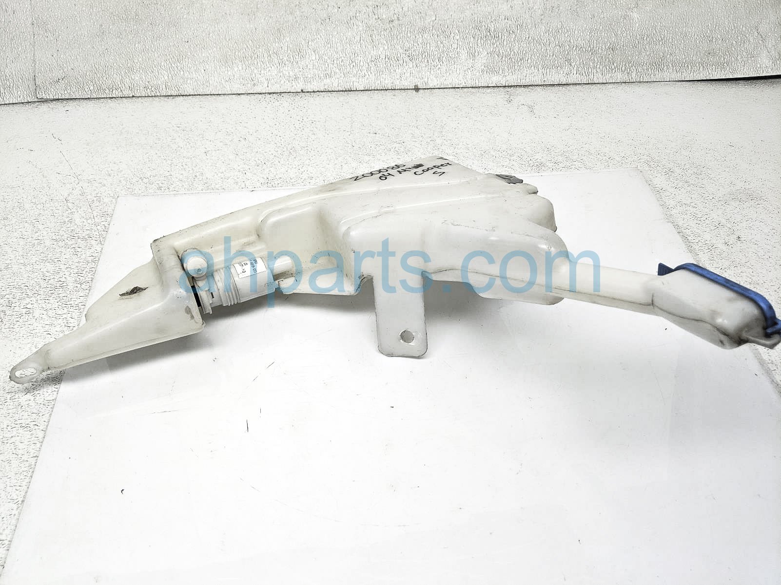 2004 BMW Mini Cooper windshield washer reservoir tank is a used item with a 1 year warranty. This OEM replacement windshield washer reservoir tank is genuine and has part numbers 61-66-7-158-231, 61667158231, 67-12-8-377-429, 67128377429, 61-66-7-045-424, and 61667045424. This BMW part sells for $35.