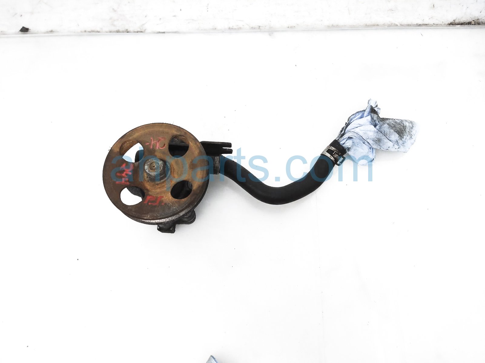 2004 Nissan Frontier power steering pump - 65k miles is a used item with a 1 year warranty. This OEM replacement power steering pump - 65k miles is genuine and has part numbers 49110-4S100, and 491104S100. This Nissan part sells for $65. This item has the following note: 'This item has a rusted pulley - grade b.'