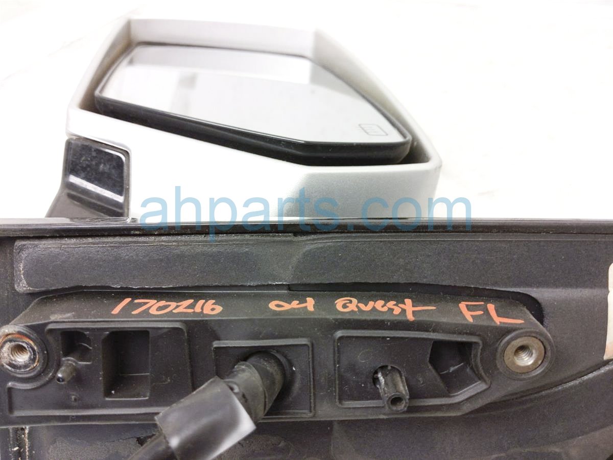 2004 Nissan Quest side driver rear view mirror - silver -scuffs is a used item with a 1 year warranty. This OEM replacement side driver rear view mirror - silver -scuffs is genuine and has part numbers 96302-5Z360, and 963025Z360. This Nissan part sells for $75.