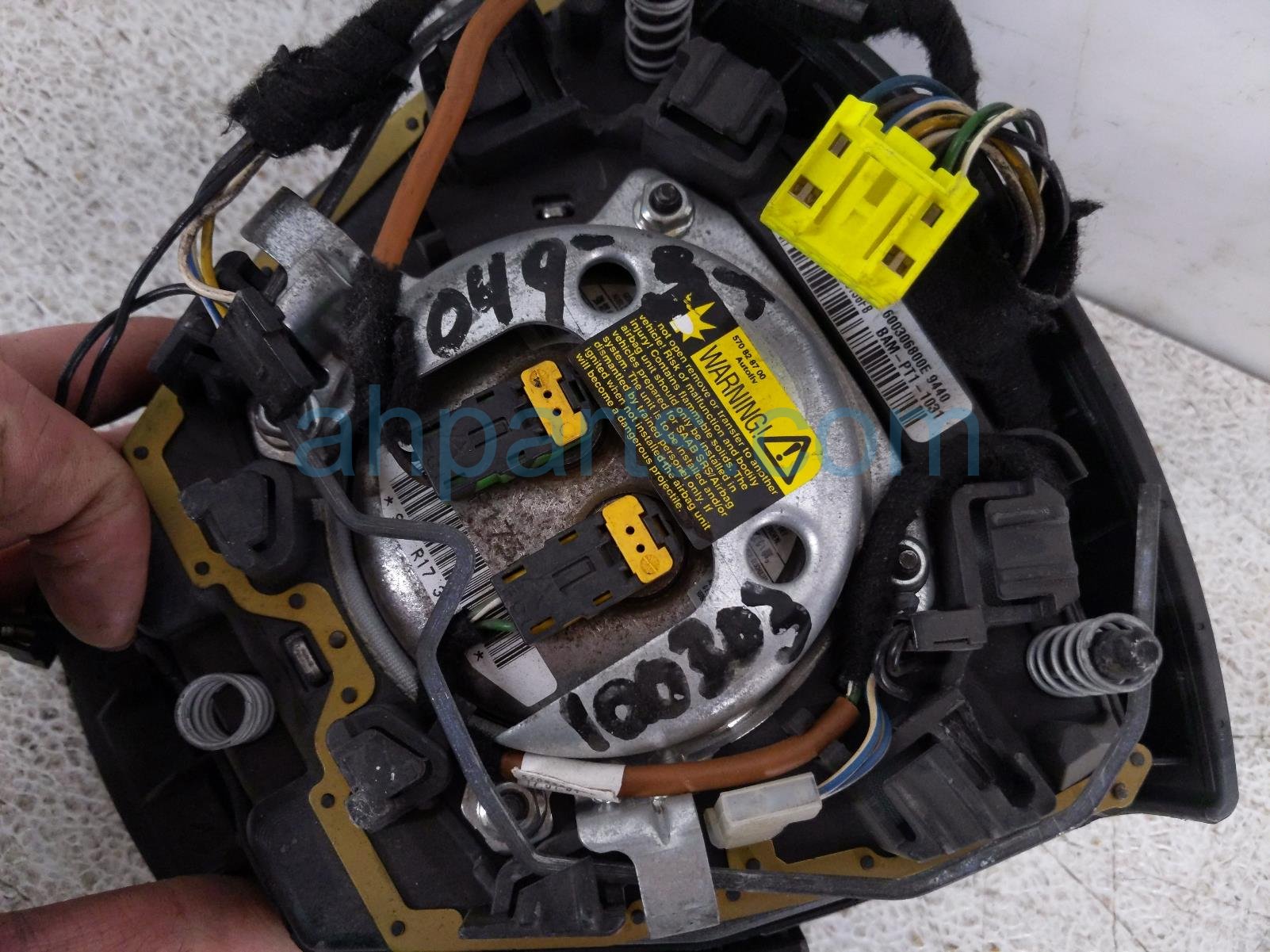 2004 Saab 9-3 driver wheel airbag is a used item with a 1 year warranty. This OEM replacement driver wheel airbag is genuine and has part numbers 12789426. This Saab part sells for $145.