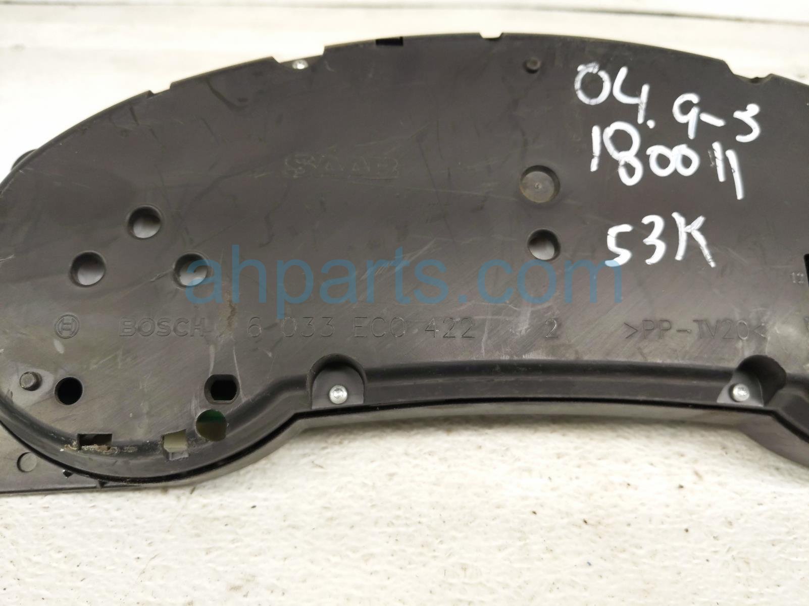 2004 Saab 9-3 instrument gauge speedometer cluster = 160k mi is a used item with a 1 year warranty. This OEM replacement instrument gauge speedometer cluster = 160k mi is genuine and has part numbers 12785195. This Saab part sells for $45. This item has the following note: 'This item has some scratches.'