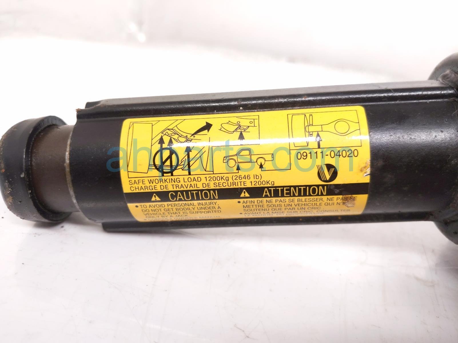 2004 Toyota Tacoma bottle lift jack is a used item with a 1 year warranty. This OEM replacement bottle lift jack is genuine and has part numbers 09111-04020, and 0911104020. This Toyota part is for sale (please call for pricing). This item has the following note: 'This item has some surface.'