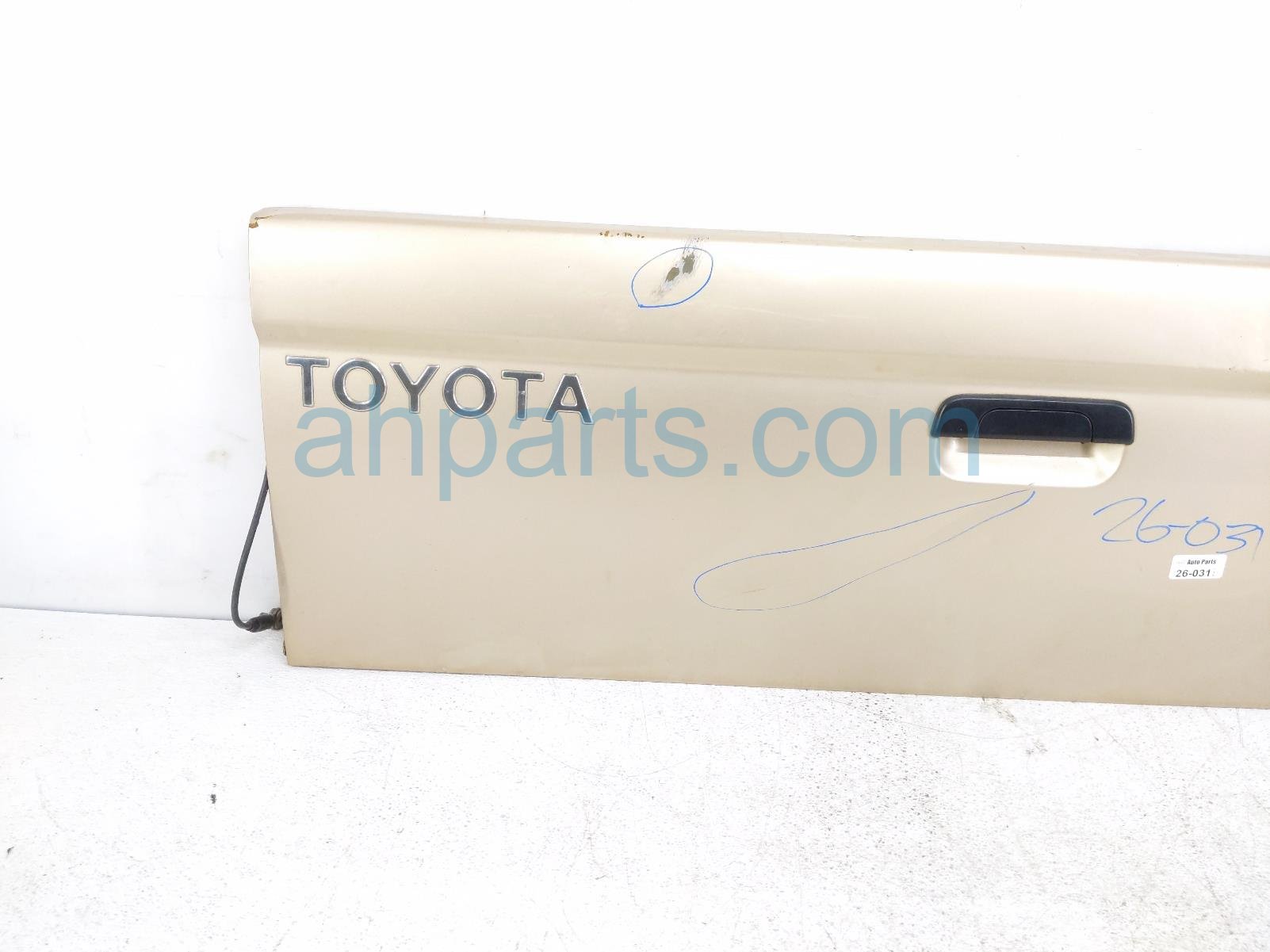 2004 Toyota Tacoma deck trunk lid lift gate / tail gate - gold is a used item with a 1 year warranty. This OEM replacement deck trunk lid lift gate / tail gate - gold is genuine and has part numbers 65700-04030, and 6570004030. This Toyota part is for sale (please call for pricing). This item has the following note: 'This item has a few dent and some scratches.'