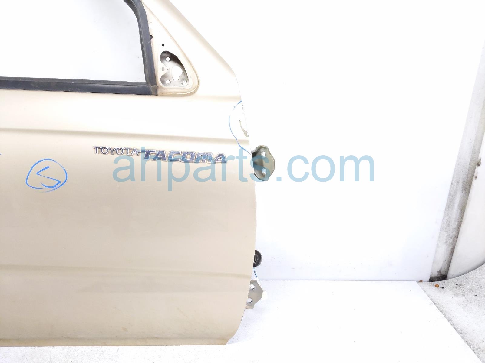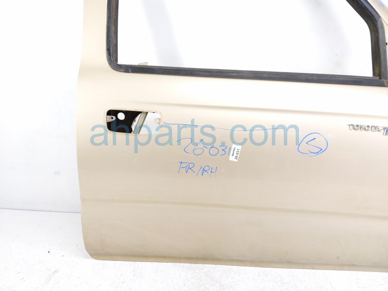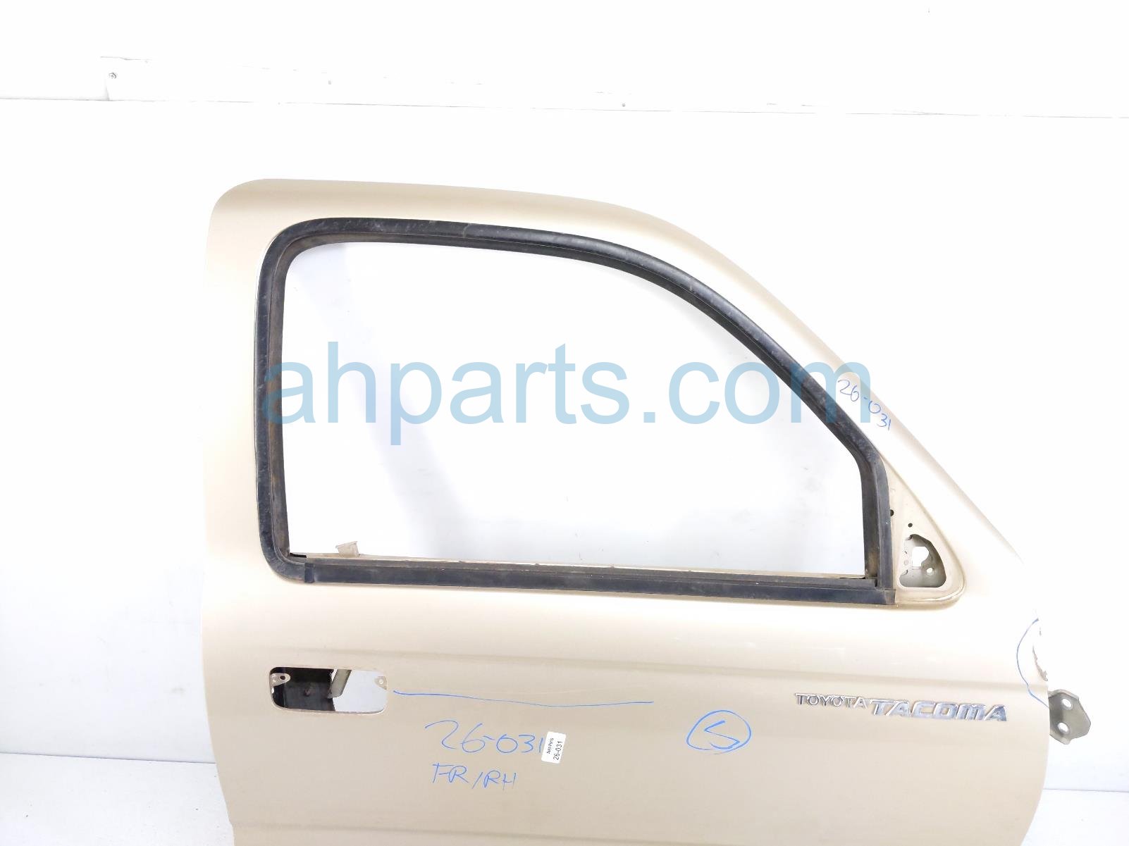 2004 Toyota Tacoma front passenger door - gold - shell only is a used item with a 1 year warranty. This OEM replacement front passenger door - gold - shell only is genuine and has part numbers 67001-04130, and 6700104130. This Toyota part is for sale (please call for pricing). This item has the following note: 'This item has a buckle and cracked paint.'