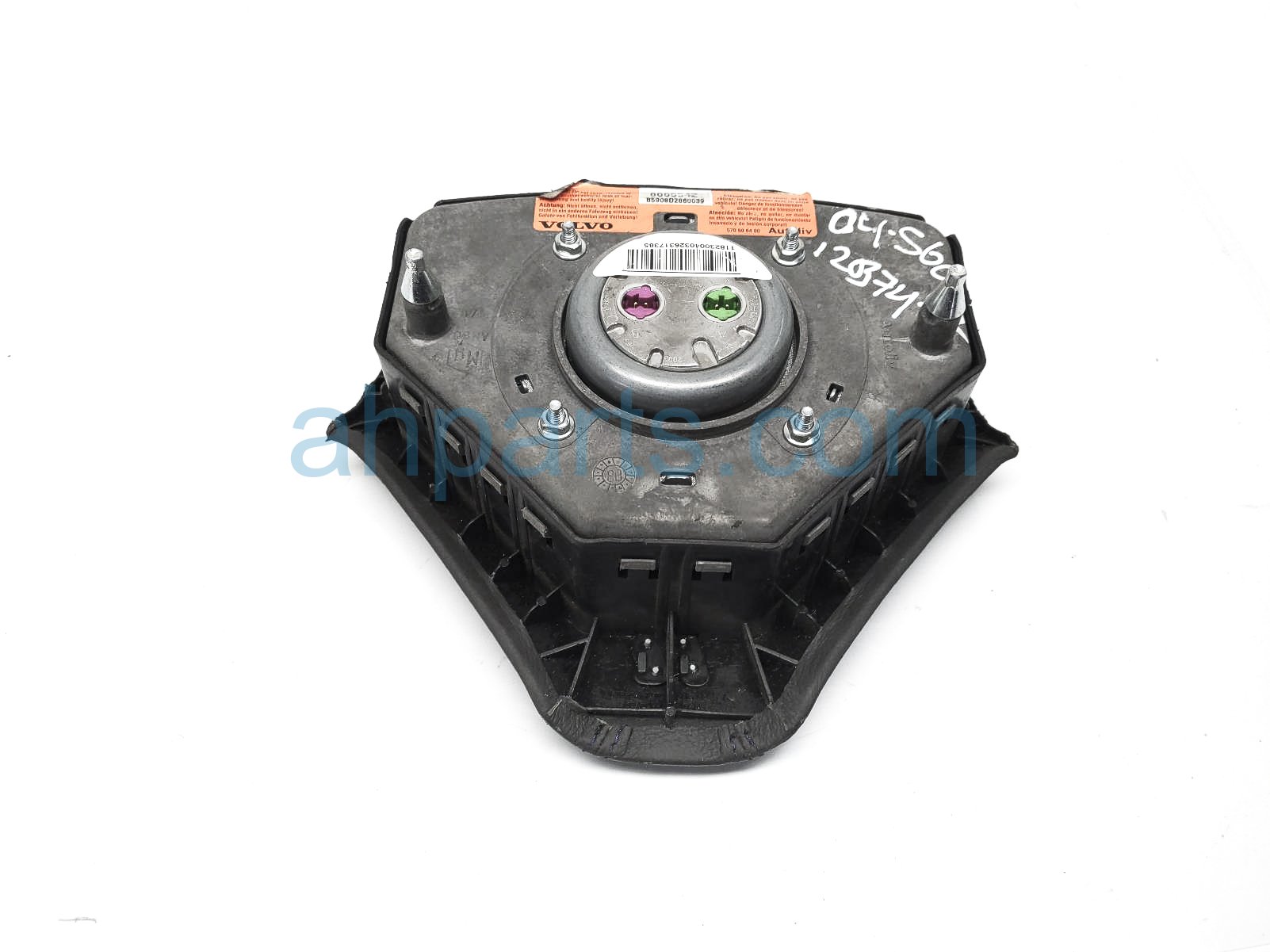 2004 Volvo S60 steering wheel airbag - black is a used item with a 1 year warranty. This OEM replacement steering wheel airbag - black is genuine and has part numbers 8665542. This Volvo part sells for $99. This item has the following note: 'This item has some small impressions.'