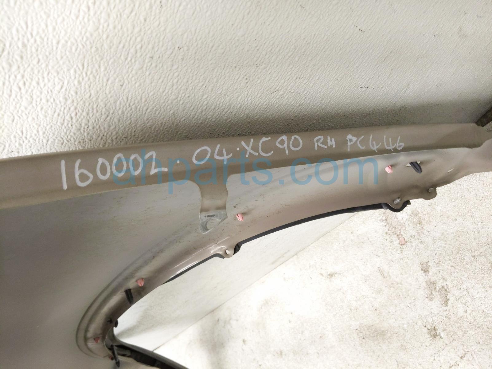 2004 Volvo XC90 front passenger fender w/ flare - gold is a used item with a 1 year warranty. This OEM replacement front passenger fender w/ flare - gold is genuine and has part numbers 30796495, and 30655182. This Volvo part sells for $100. This item has the following note: 'This item has some scratches.'