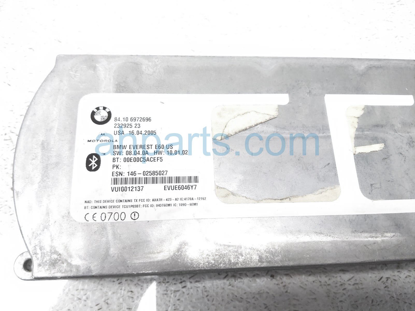 2005 BMW 545I telematics control module unit is a used item with a 1 year warranty. This OEM replacement telematics control module unit is genuine and has part numbers 84-10-6-972-696, and 84106972696. This BMW part sells for $35.