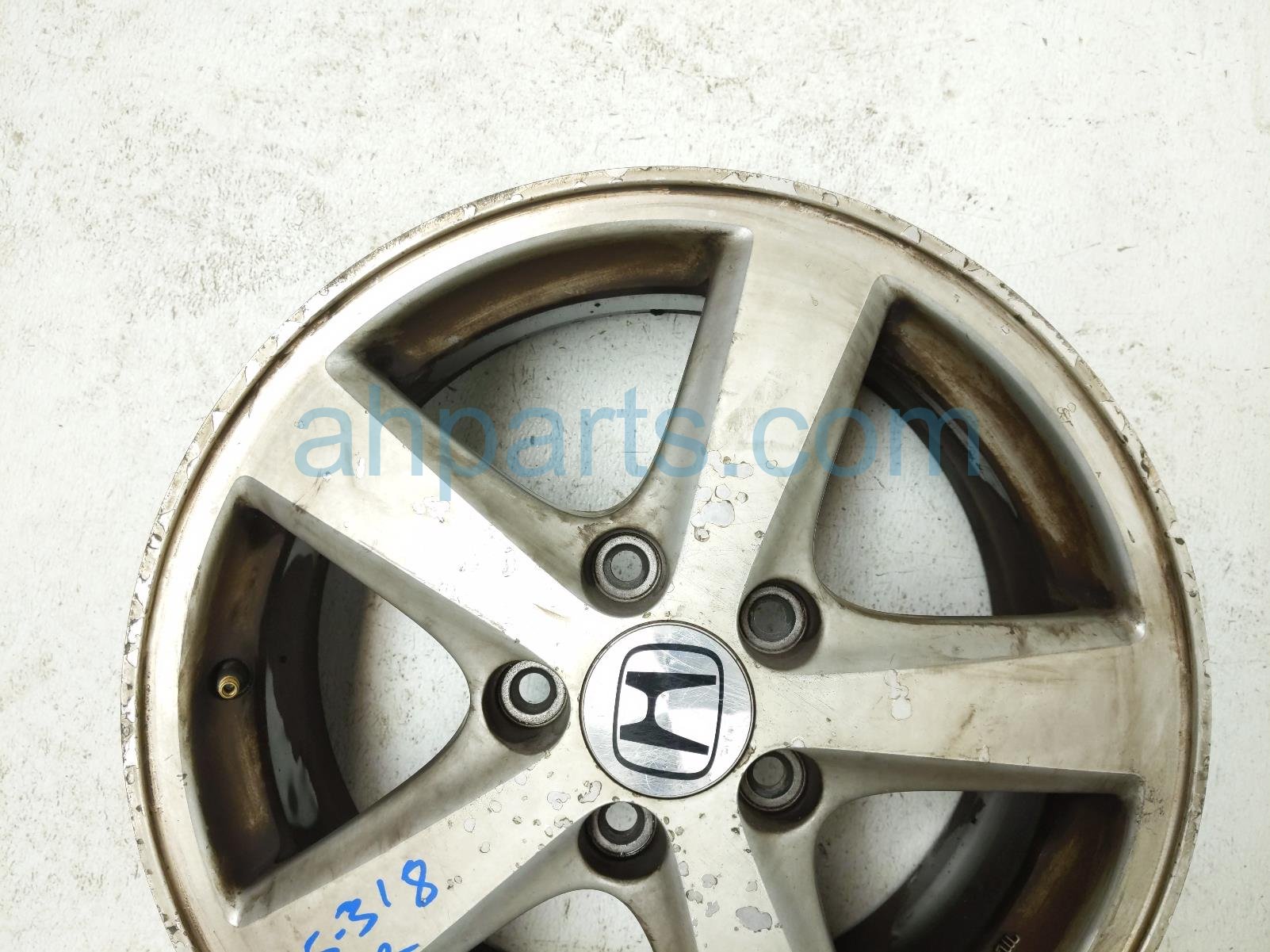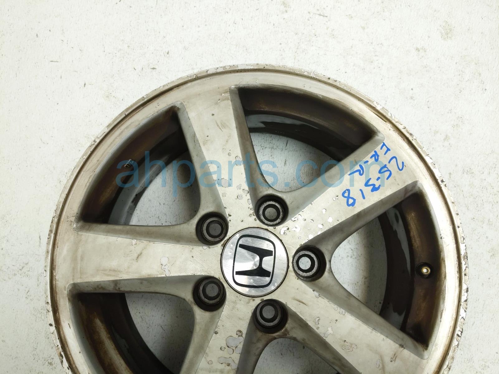 2005 Honda Accord front passenger wheel / rim - curb rash is a used item with a 1 year warranty. This OEM replacement front passenger wheel / rim - curb rash is genuine and has part numbers 08W16-SDB-101A, 08W16SDB101A, 08W16-SDB-1A0R1, and 08W16SDB1A0R1. This Honda part sells for $75.