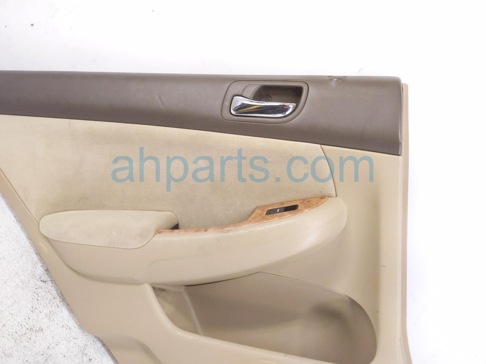 2005 Honda Accord rear liner rear driver inside door trim panel - tan is a used item with a 1 year warranty. This OEM replacement rear liner rear driver inside door trim panel - tan is genuine and has part numbers 83750-SDA-A22ZC, and 83750SDAA22ZC. This Honda part is for sale (please call for pricing).