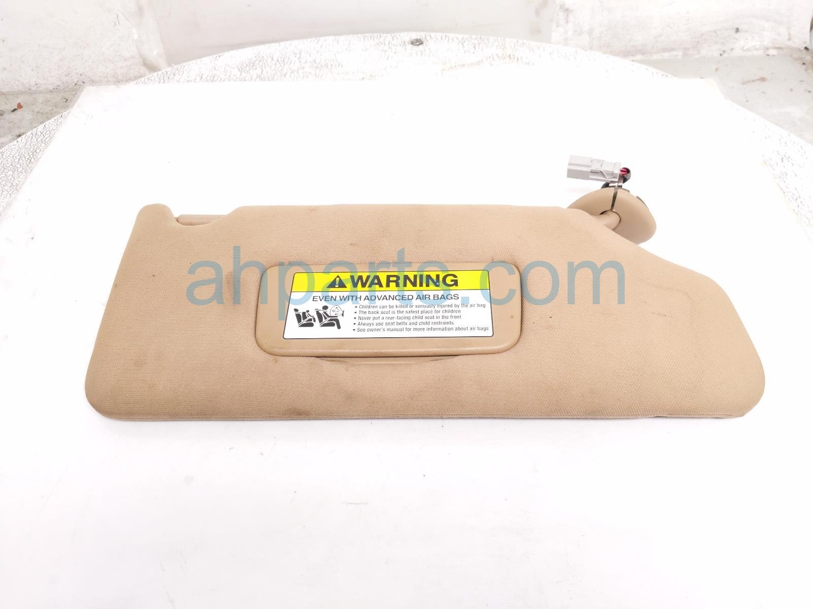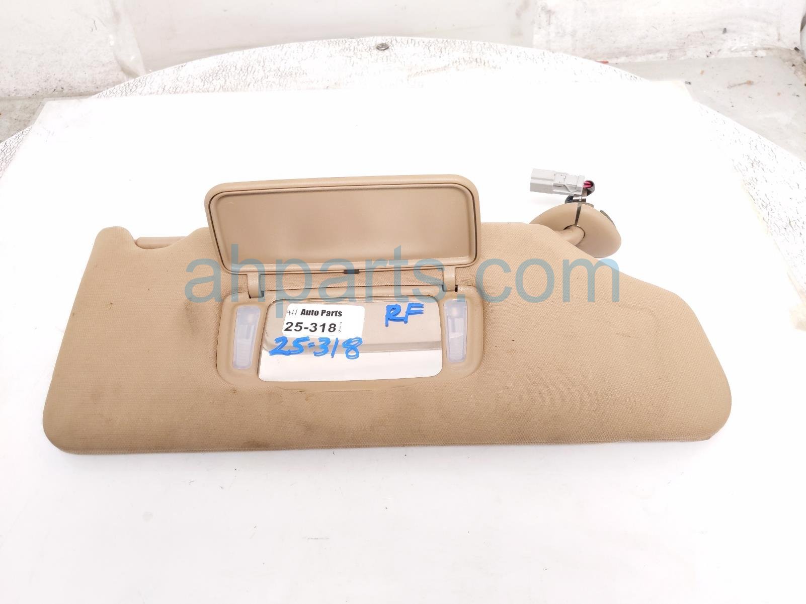 2005 Honda Accord passenger sun visor - tan is a used item with a 1 year warranty. This OEM replacement passenger sun visor - tan is genuine and has part numbers 83230-SDB-A03ZB, and 83230SDBA03ZB. This Honda part is for sale (please call for pricing). This item has the following note: 'Item is a little dirty.'