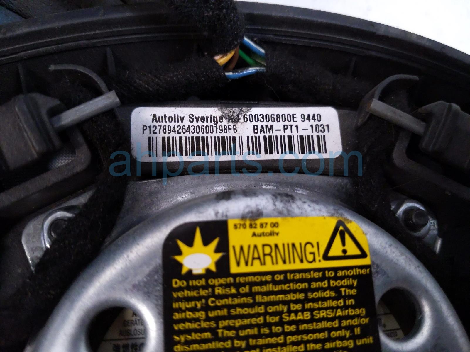 2005 Saab 9-3 driver wheel airbag is a used item with a 1 year warranty. This OEM replacement driver wheel airbag is genuine and has part numbers 12789426. This Saab part sells for $145.