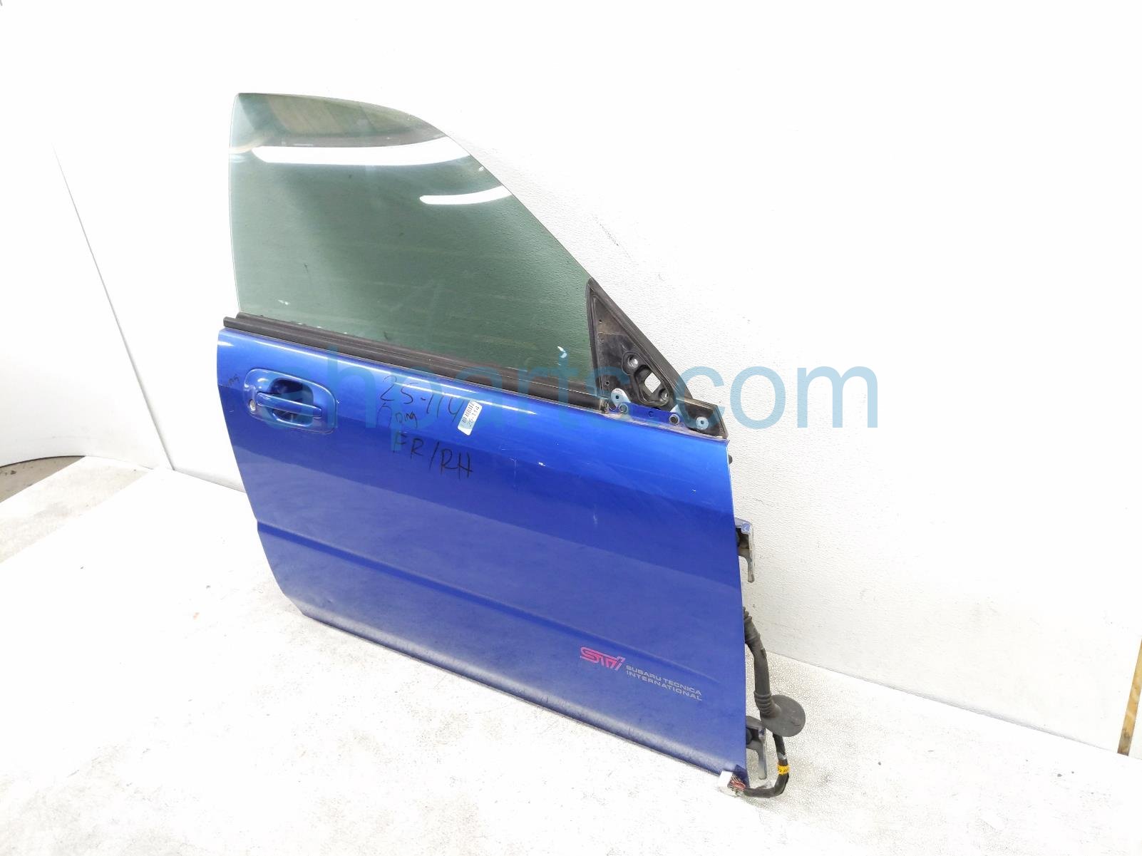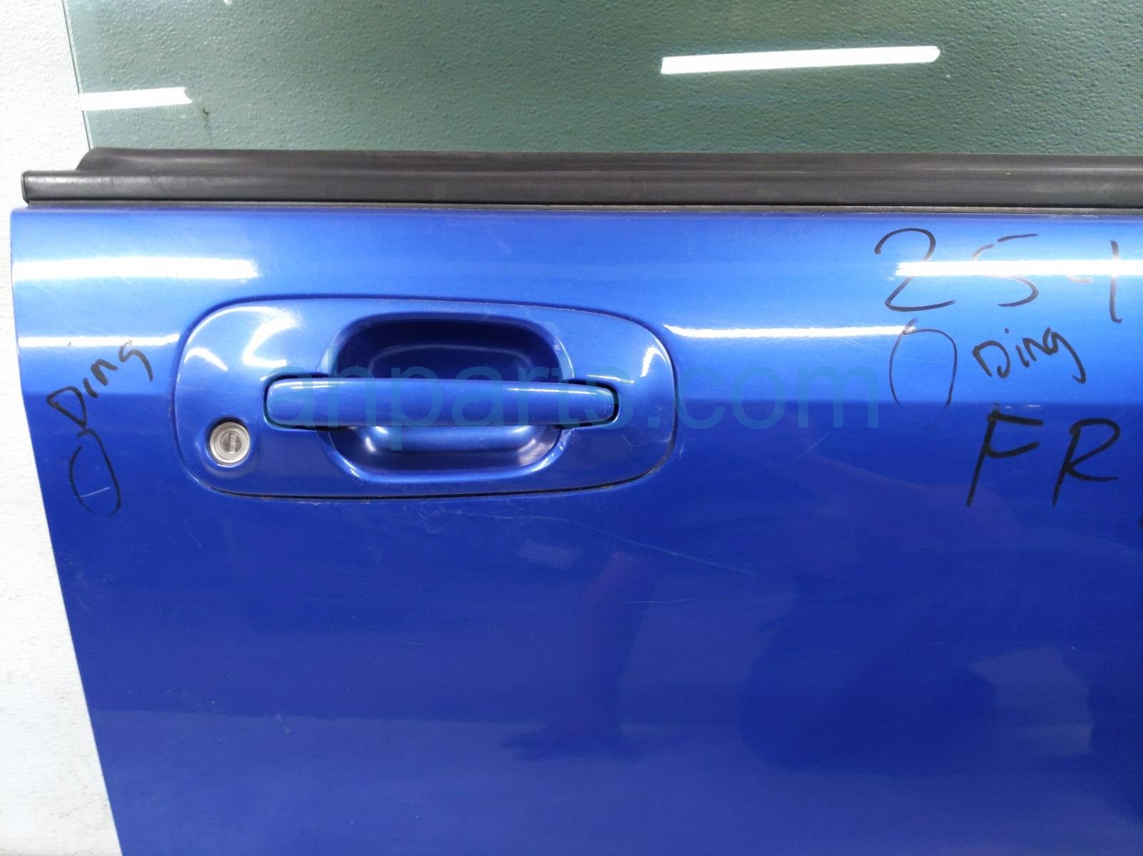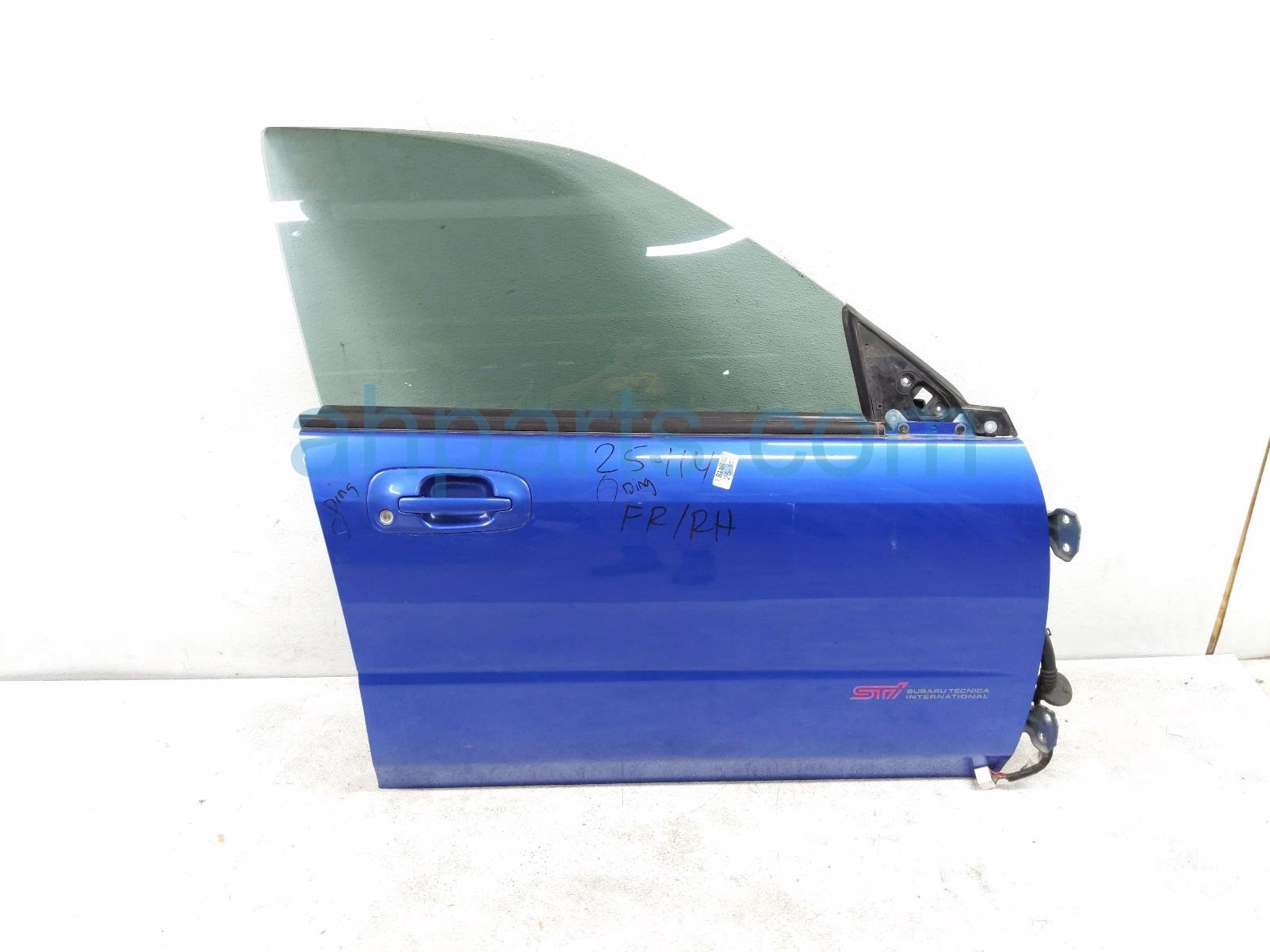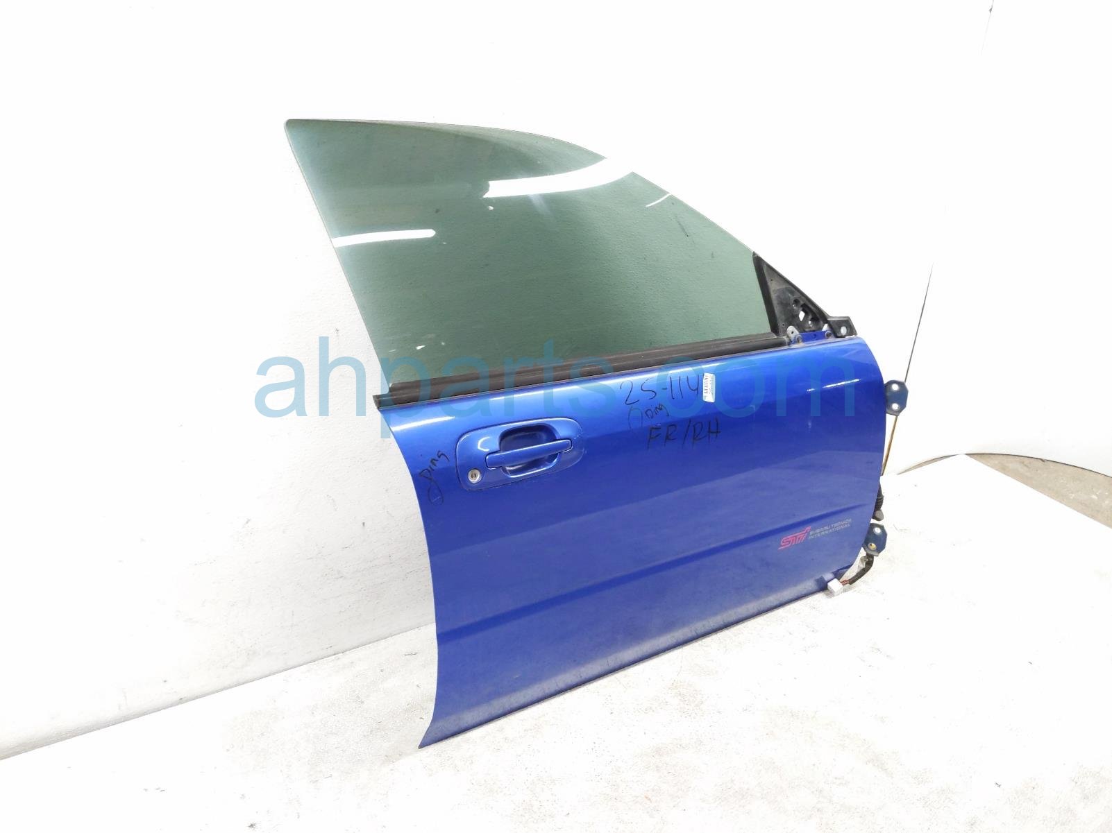 2005 Subaru Impreza front passenger door - blue - no mirror/trim* is a used item with a 1 year warranty. This OEM replacement front passenger door - blue - no mirror/trim* is genuine and has part numbers 60009FE005, 61011FE080, 61222FE020, and 61188FE021. This Subaru part sells for $299. This item has the following note: 'Has a couple small dings & scratches - grade b.'