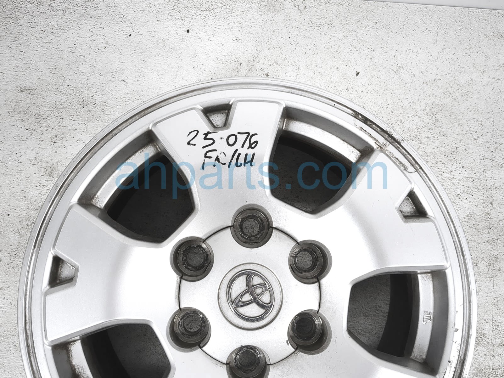 2005 Toyota Tacoma front driver wheel / rim - some curb rash is a used item with a 1 year warranty. This OEM replacement front driver wheel / rim - some curb rash is genuine and has part numbers 42611-AD031, and 42611AD031. This Toyota part sells for $90. This item has the following note: 'This wheel has some light curb wear. grade b.'