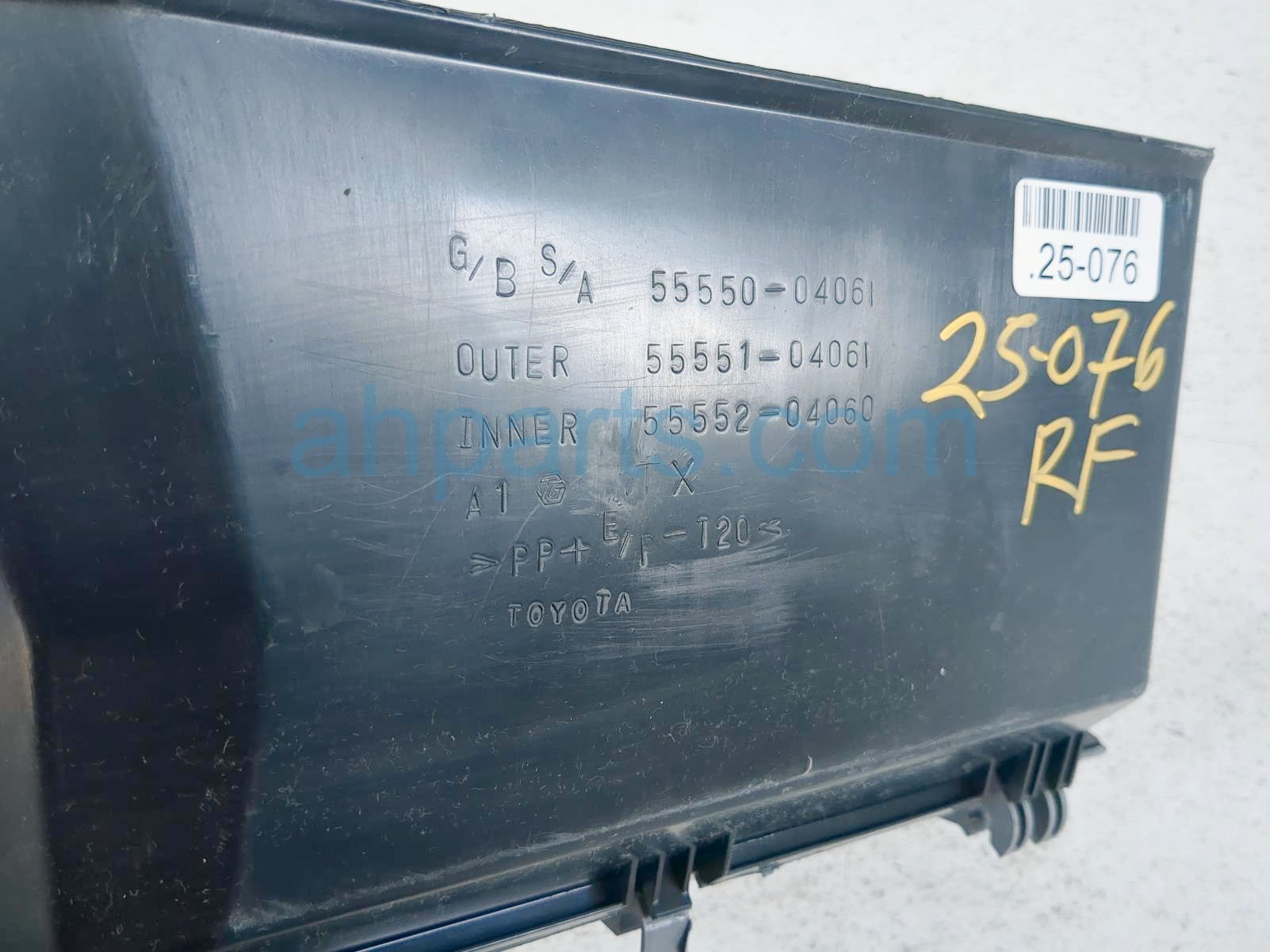 2005 Toyota Tacoma glove compartment box - grey is a used item with a 1 year warranty. This OEM replacement glove compartment box - grey is genuine and has part numbers 55550-04061-B0, and 5555004061B0. This Toyota part sells for $125.