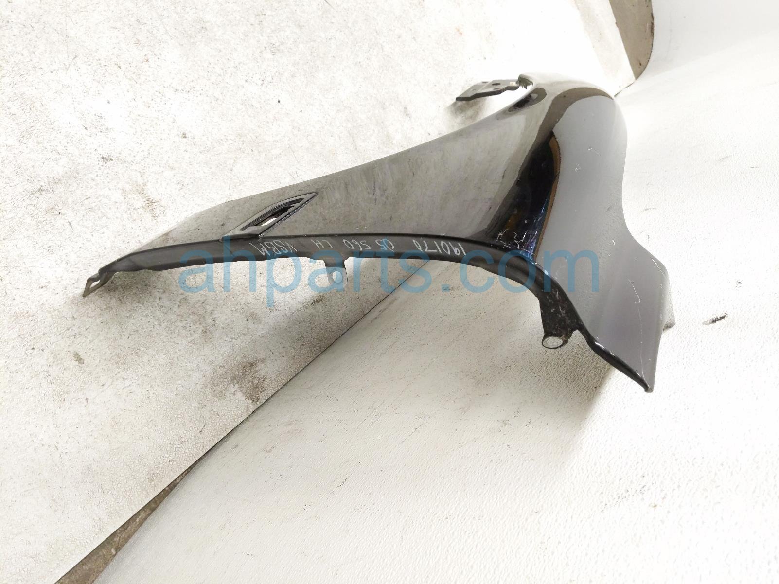 2005 Volvo S60 front driver fender - black is a used item with a 1 year warranty. This OEM replacement front driver fender - black is genuine and has part numbers 30796492. This Volvo part sells for $99. This item has the following note: 'Item has scratches all over and rear upepr section has bent were bolts on.'