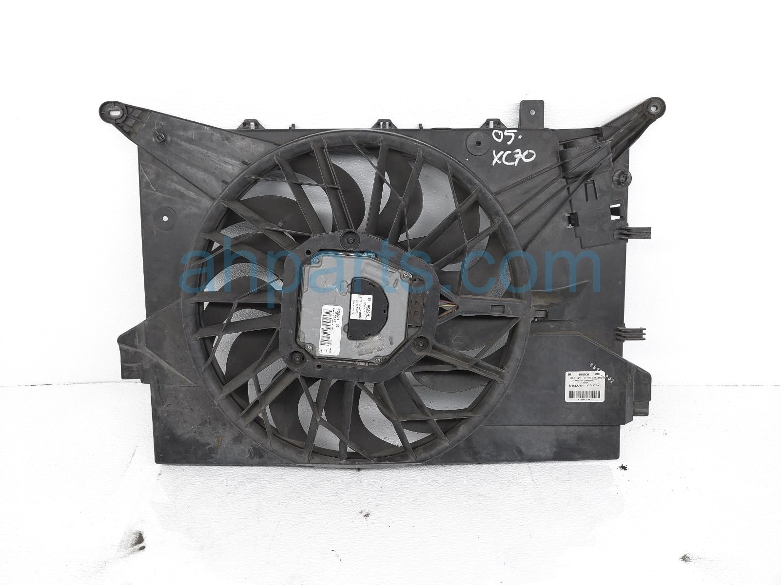 2005 Volvo XC70 radiator cooling fan assembly is a used item with a 1 year warranty. This OEM replacement radiator cooling fan assembly is genuine and has part numbers 30680512. This Volvo part sells for $75.