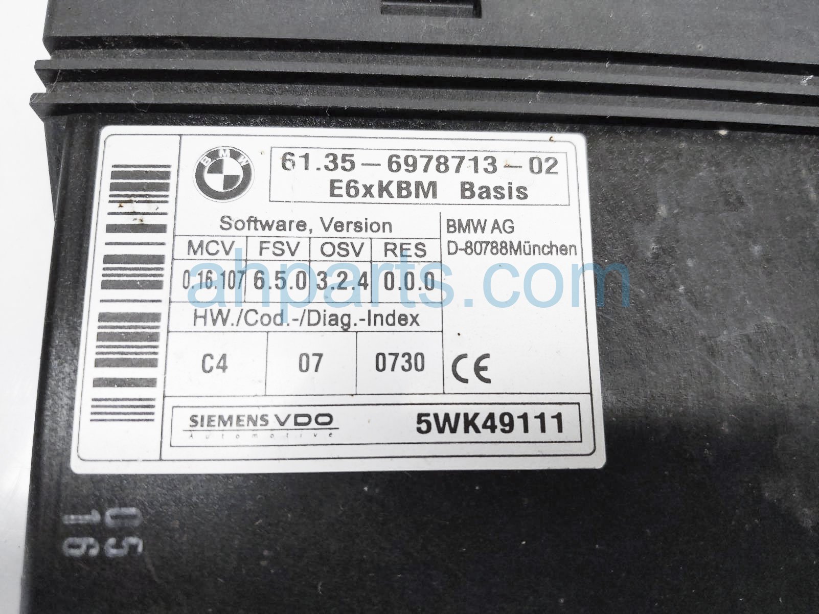 2006 BMW 650I body control module unit is a used item with a 1 year warranty. This OEM replacement body control module unit is genuine and has part numbers 61-35-6-978-713, and 61356978713. This BMW part sells for $49.