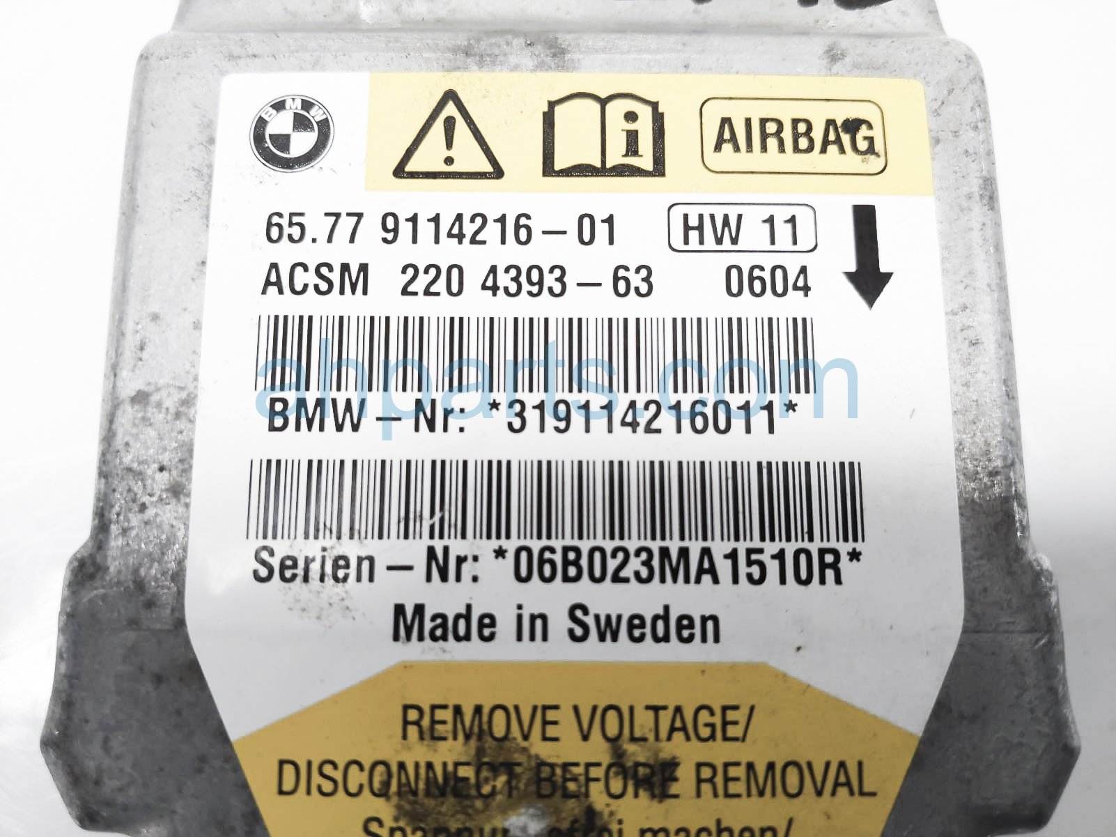 2006 BMW 650I srs control module unit - good is a used item with a 1 year warranty. This OEM replacement srs control module unit - good is genuine and has part numbers 65-77-9-114-216, and 65779114216. This BMW part sells for $100.