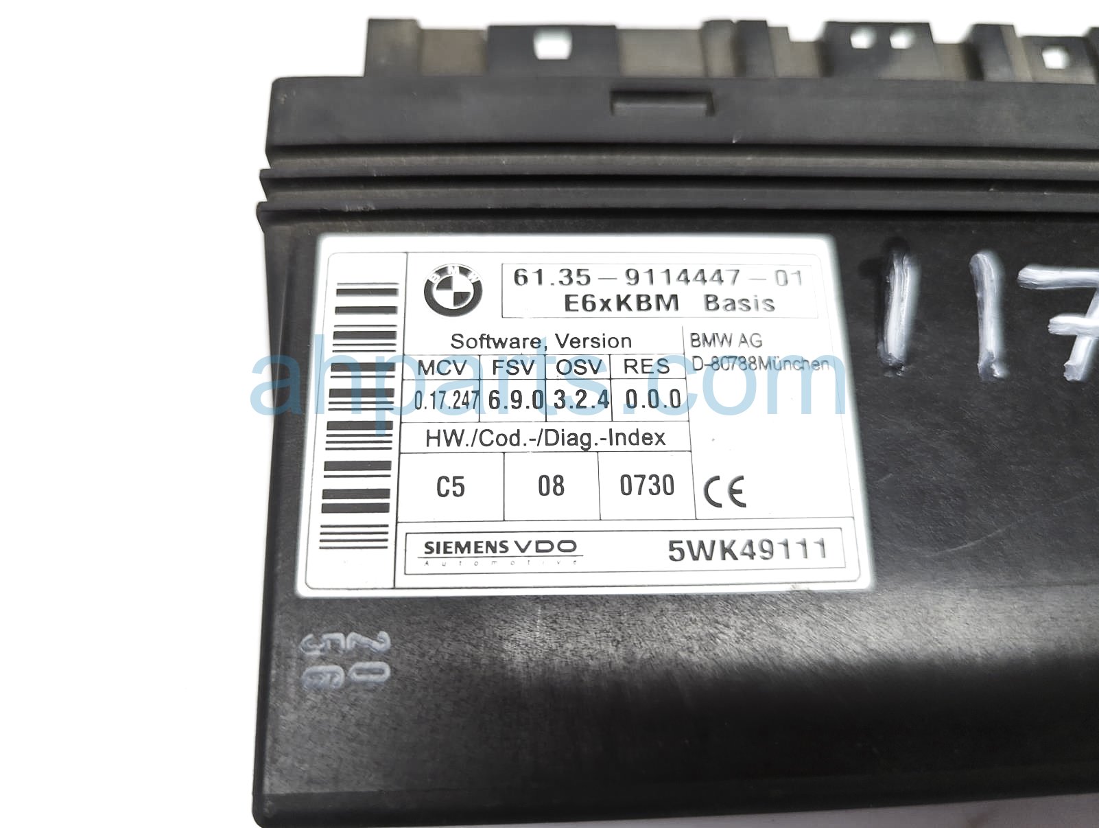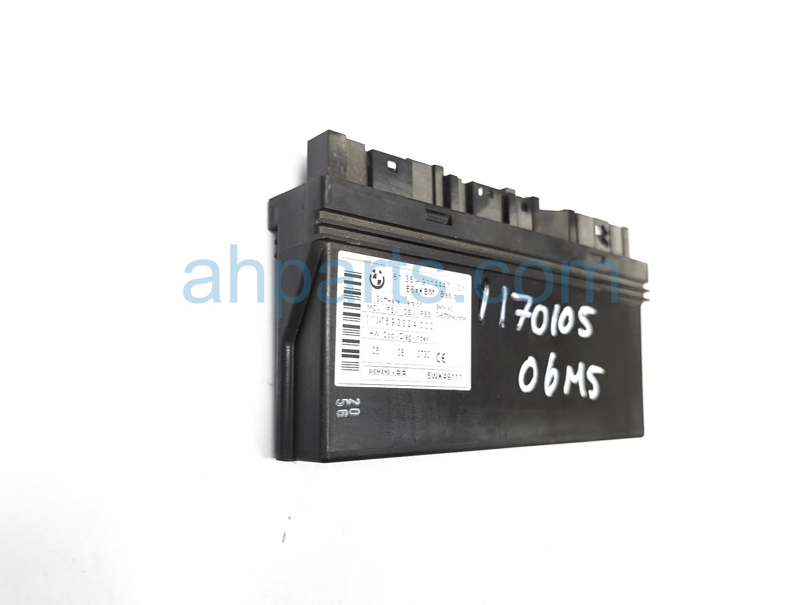 2006 BMW M5 body control module unit is a used item with a 1 year warranty. This OEM replacement body control module unit is genuine and has part numbers 61-35-9-176-069, 61359176069, 61-35-9-114-447, and 61359114447. This BMW part sells for $49.