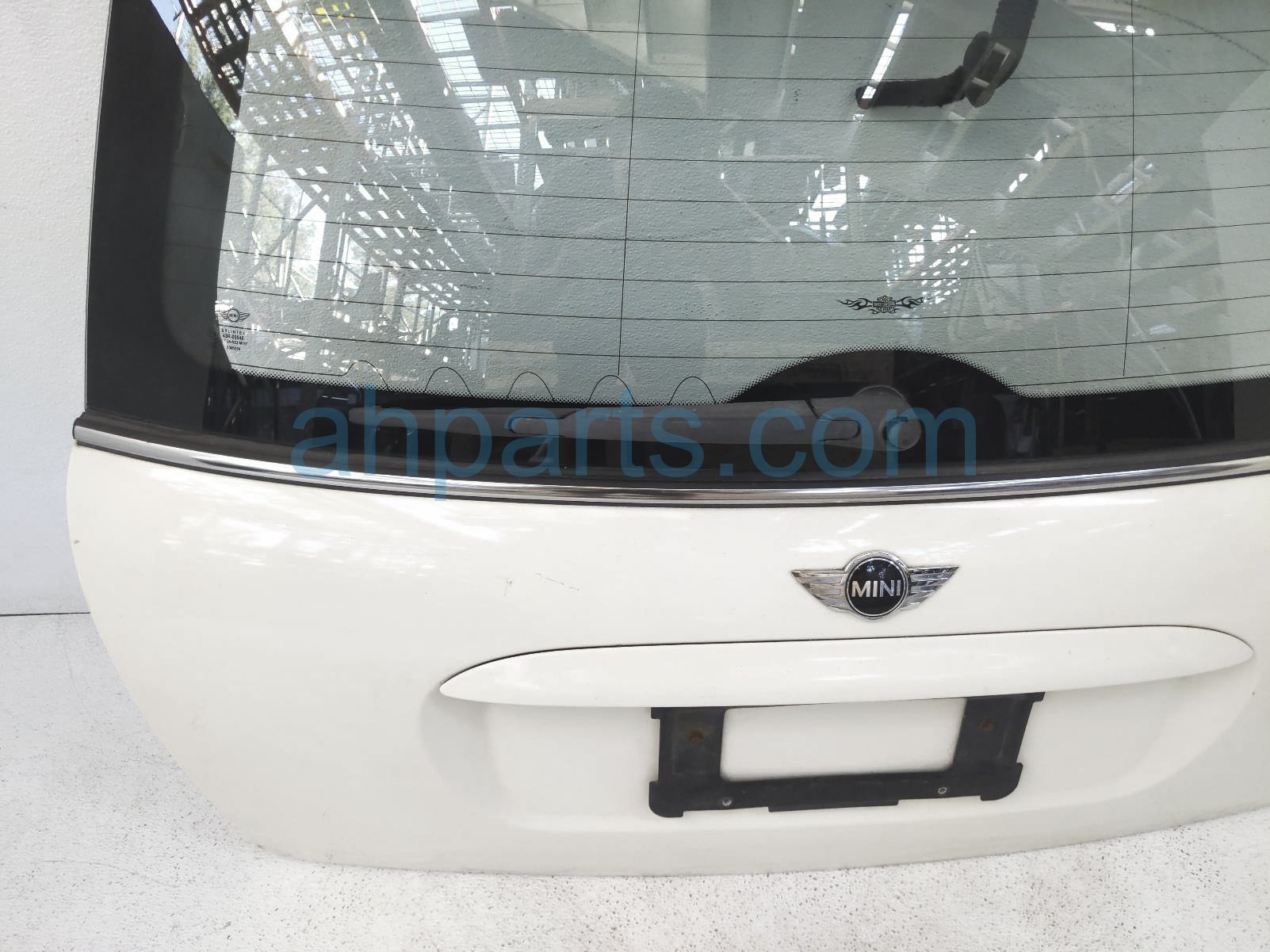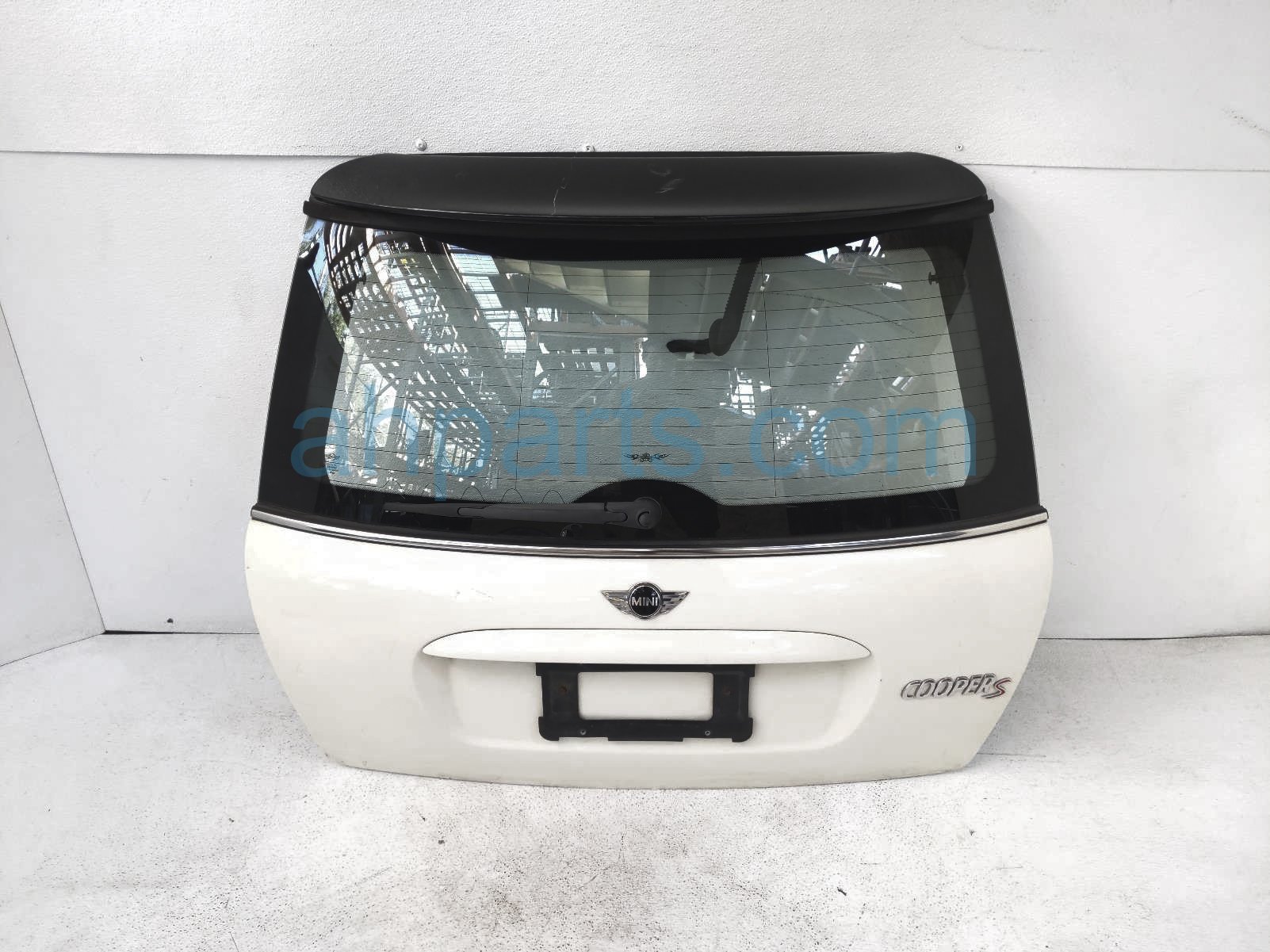 2006 BMW Mini Cooper deck trunk lid lift/tail gate - white is a used item with a 1 year warranty. This OEM replacement deck trunk lid lift/tail gate - white is genuine and has part numbers 41-62-7-139-735, 41627139735, 51-31-7-144-921, and 51317144921. This BMW part sells for $149. This item has the following note: 'This item has some paint scuffs.'